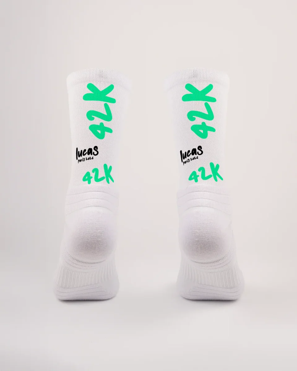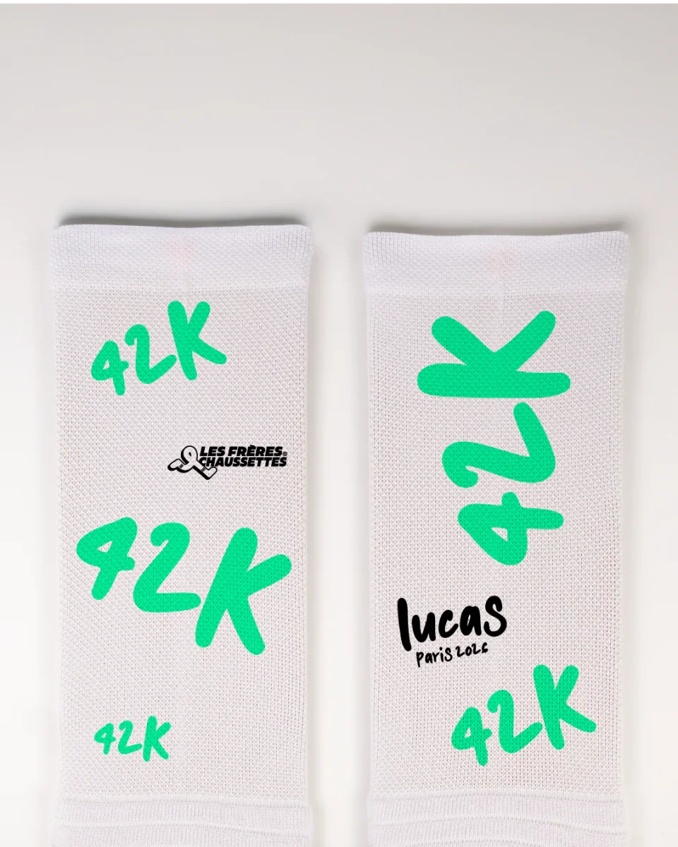 -Personnalisation des couleurs, du prénom et de l’objectif -Maille respirante et confortable, idéale pour le running -Fabrication 100% polyester résistant -Séchage ultra rapide pour garder les pieds au sec -Conçues pour allier performance et style sur toutes vos courses