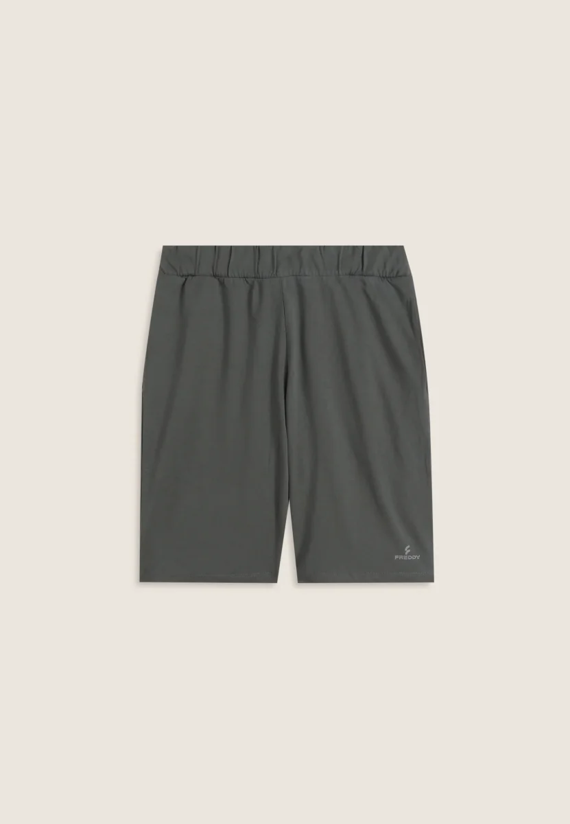 Pantaloni corti uomo in cotone elasticizzato dal taglio regular fit, perfetti per garantire comfort e libertà di movimento. La vita è dotata di elastico interno e coulisse per una regolazione pratica e personalizzata. Le tasche anteriori interne aggiungono funzionalità mantenendo il design pulito ed essenziale. Il logo FREDDY stampato in tono colore sul fianco sinistro rifinisce il capo con discrezione. Un must-have versatile per il tempo libero e le giornate più dinamiche.