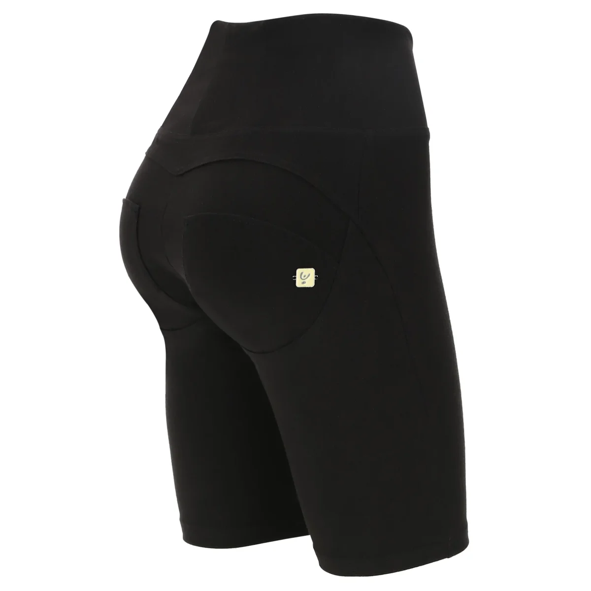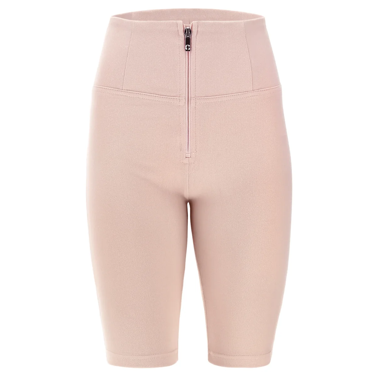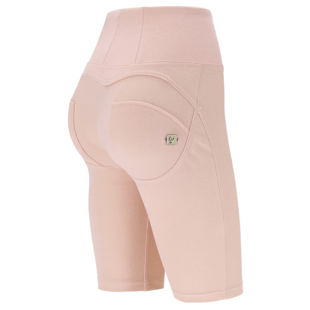 Pantaloni biker push up della linea WR.UP® con vita alta chiusa da zip frontale realizzati in jersey drill ecologico elasticizzato, un tessuto green ottenuto da materiali riciclati, resistente e morbido al tatto. Il modello presenta lunghezza ciclista e vestibilità skinny per una piacevole aderenza alle linee del corpo.