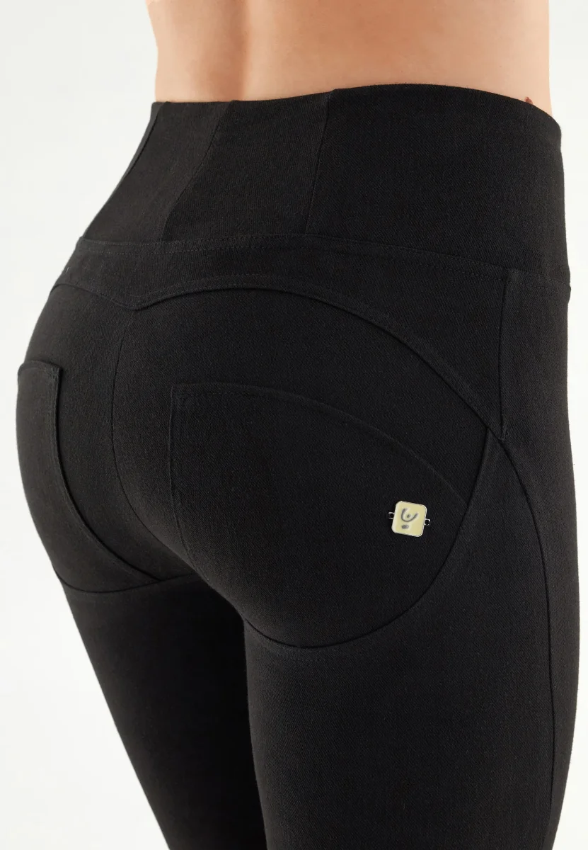 Capo comodo che dona ampiezza di movimento ideato per valorizzare le tue forme grazie al suo design e al gradevole effetto shaping dato dalla tecnologia WR.UP® brevettata da Freddy che esalta la silhouette e dona un effetto modellante e sollevante per mezzo di un particolare sistema di inserti e cuciture.