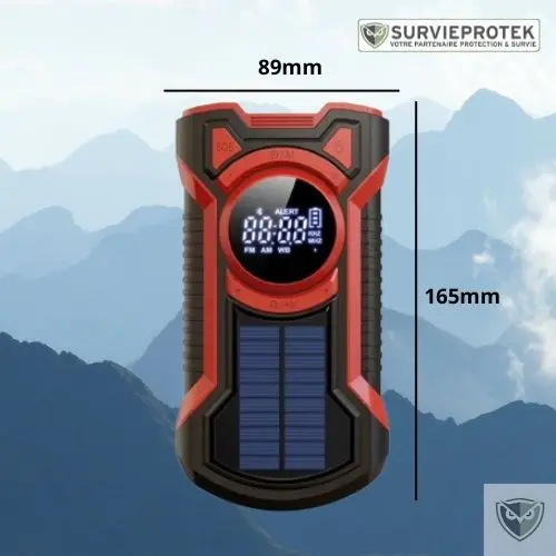 Compacte mais puissante, elle combine radio, lampe, powerbank, alarme SOS et Bluetooth pour ne jamais vous laisser sans solution en pleine nature.