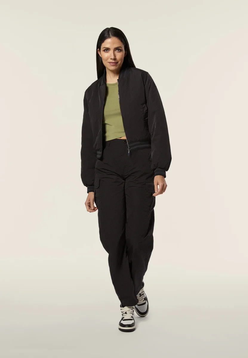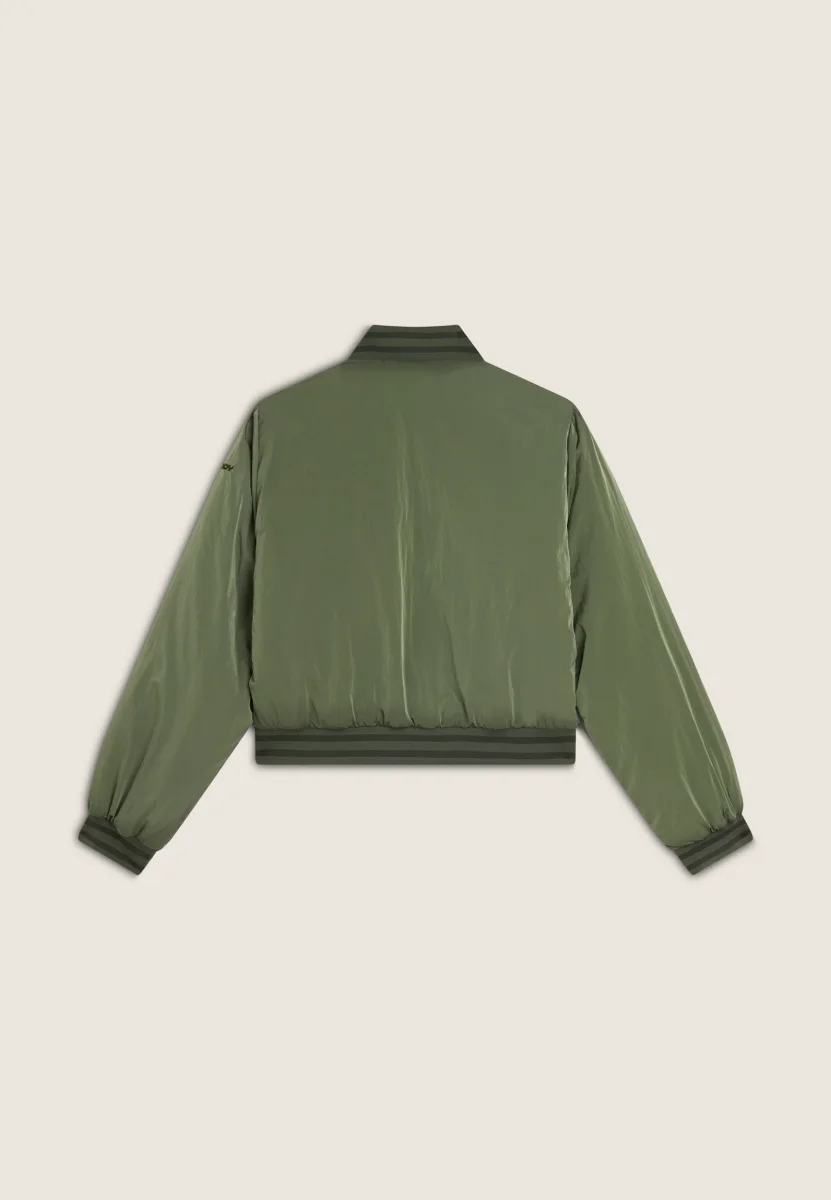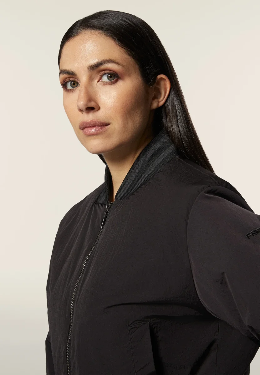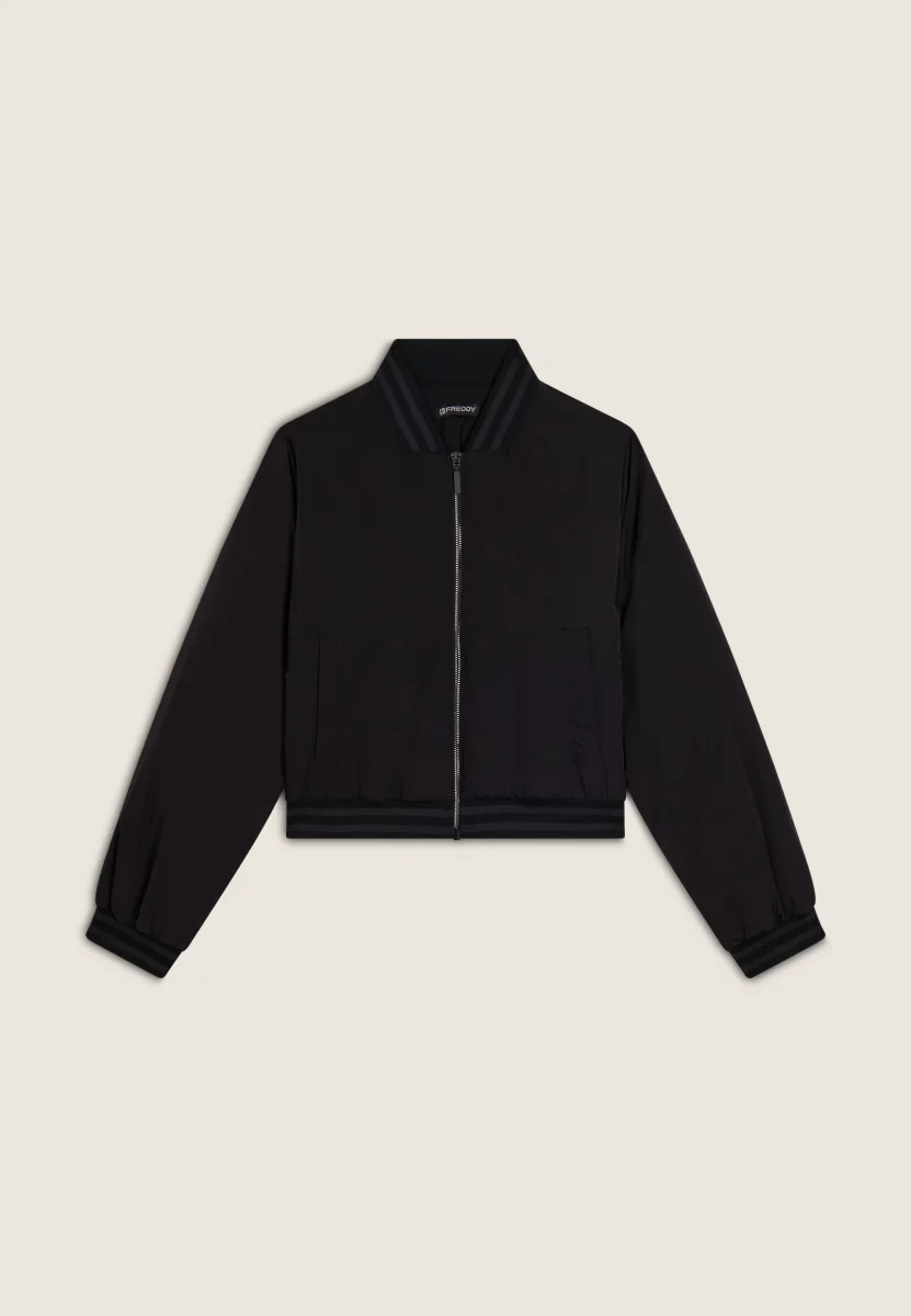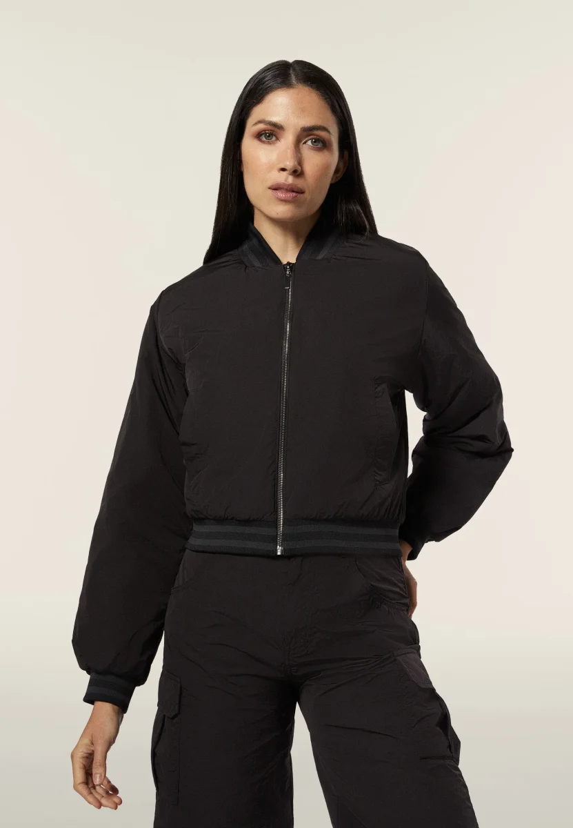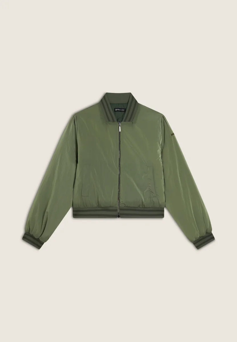 Bomber in nylon navetta con zip e dettagli in costina rigata
