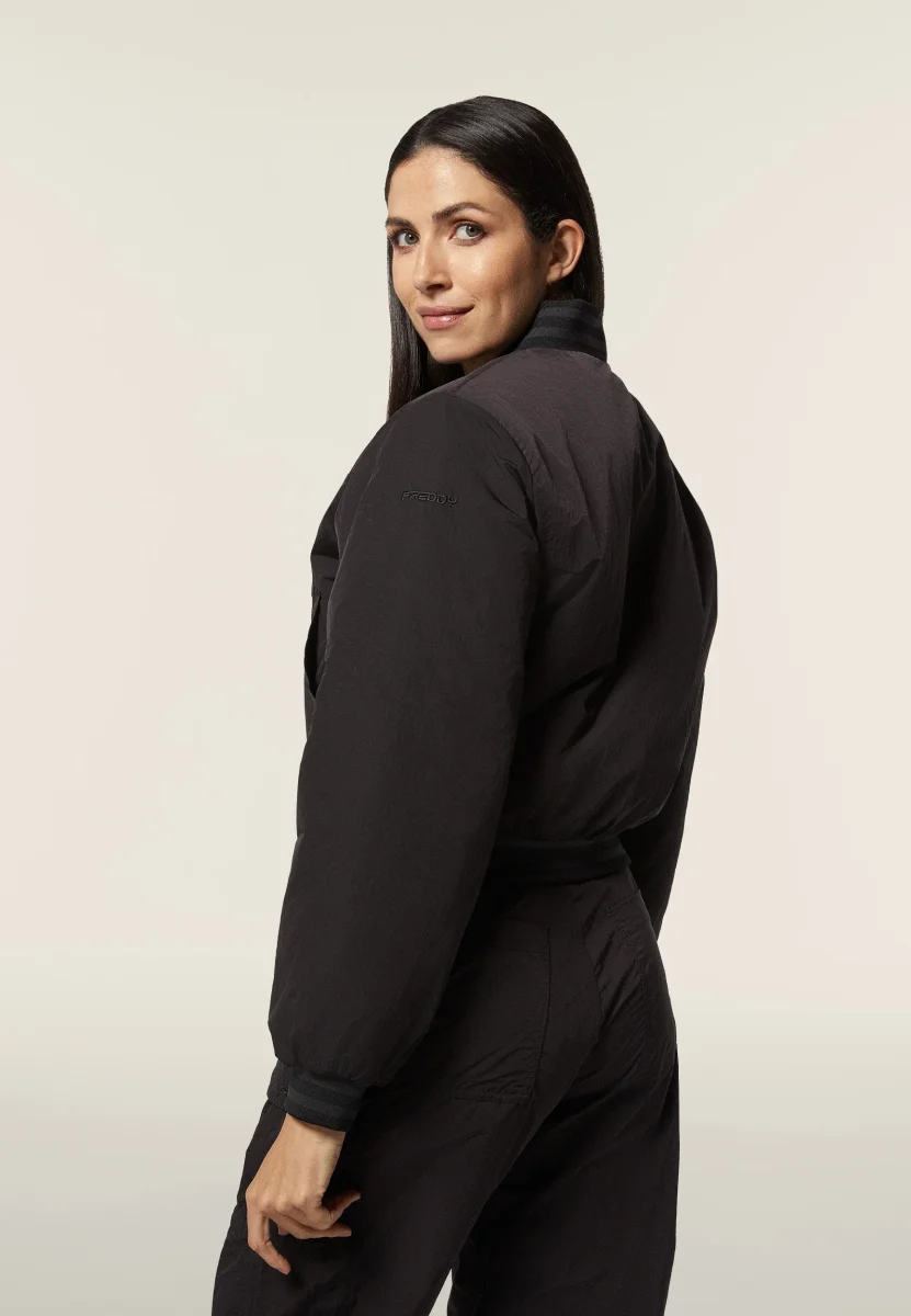 Mantieni alta la tua energia con questo bomber comfort fit da donna in luminoso nylon navetta. Con imbottitura sintetica e fodera interna, è perfetto per le giornate più fresche. Logo sulla spalla sinistra, tasche interne e dettagli in costina a strisce per un look irresistibile!