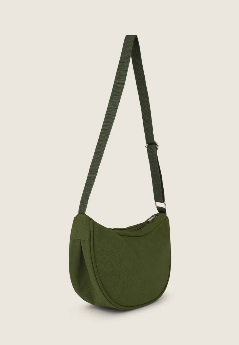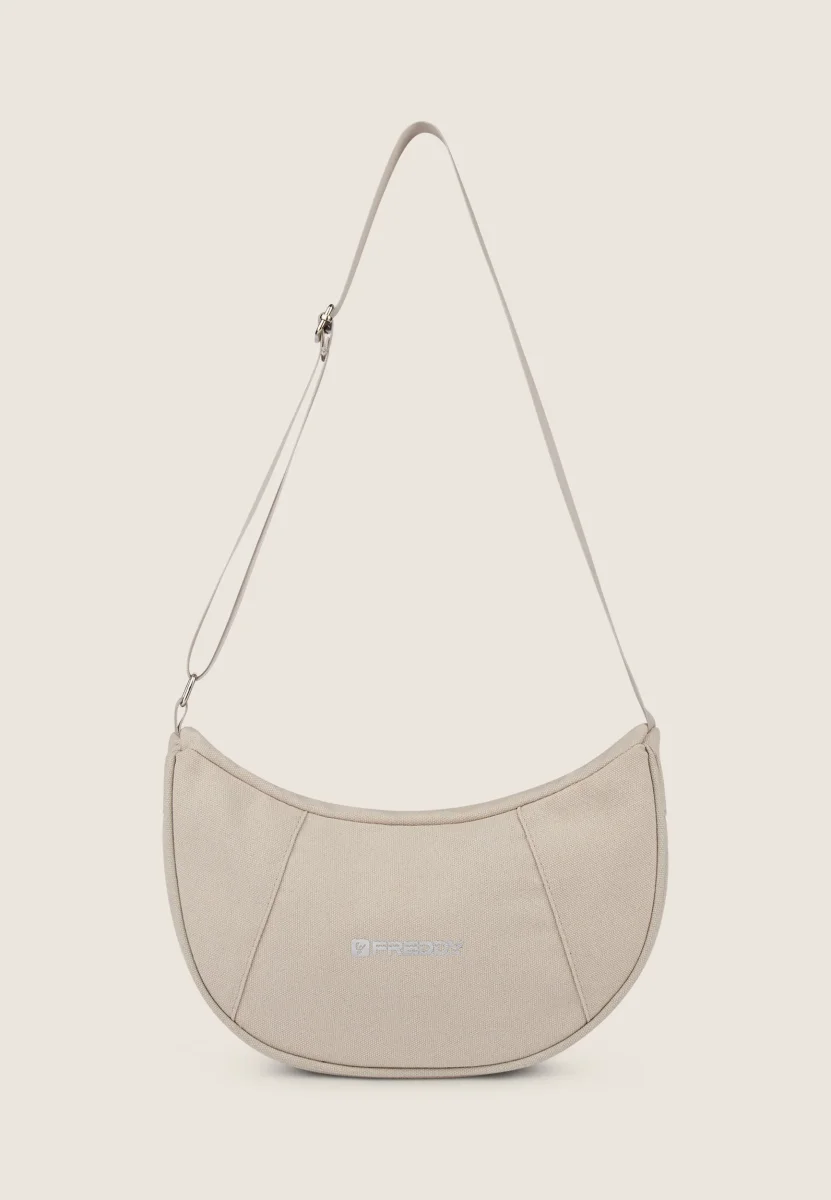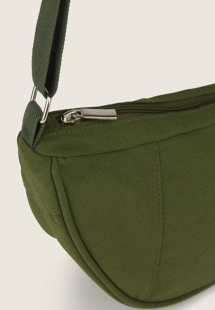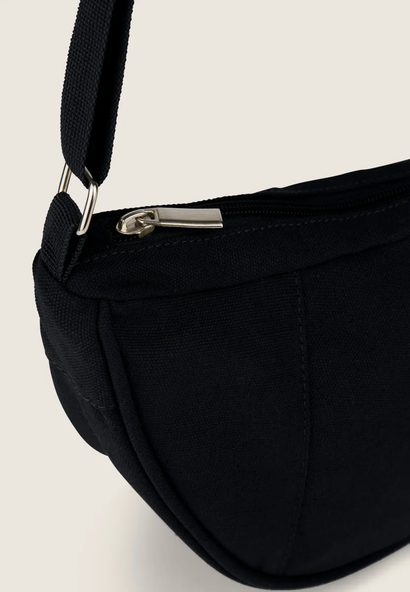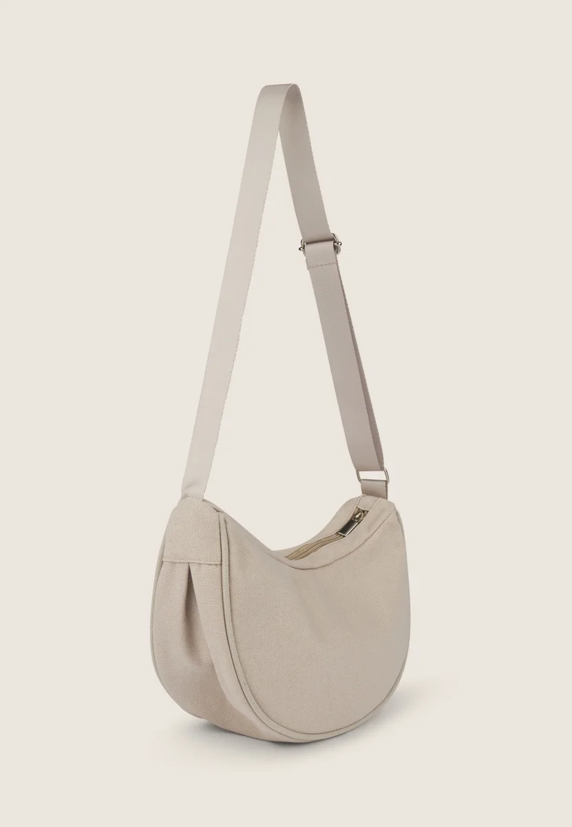 Borsa da spalla a mezzaluna in canvas con zip