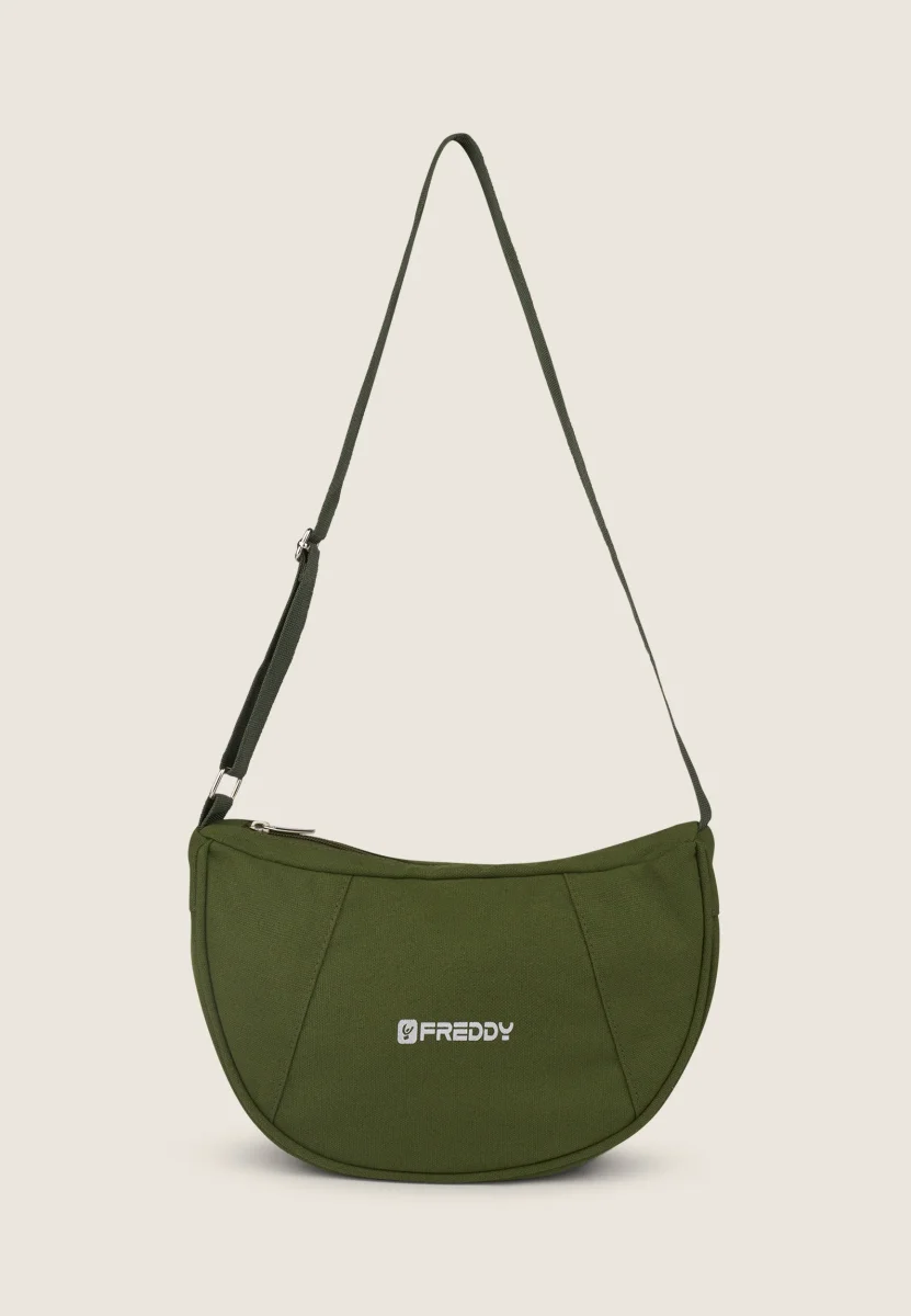 Pratica e di carattere, questa borsa a spalla in canvas monocolore è pensata per accompagnarti con stile nella vita di tutti i giorni. I bordi rinforzati garantiscono una maggiore durata, mentre la tracolla regolabile ti offre la massima comodità. La chiusura con zip mantiene al sicuro i tuoi oggetti essenziali, e il logo FREDDY gommato sul lato esterno aggiunge un tocco moderno e distintivo. Perfetta per chi cerca funzionalità e design in un accessorio unico.