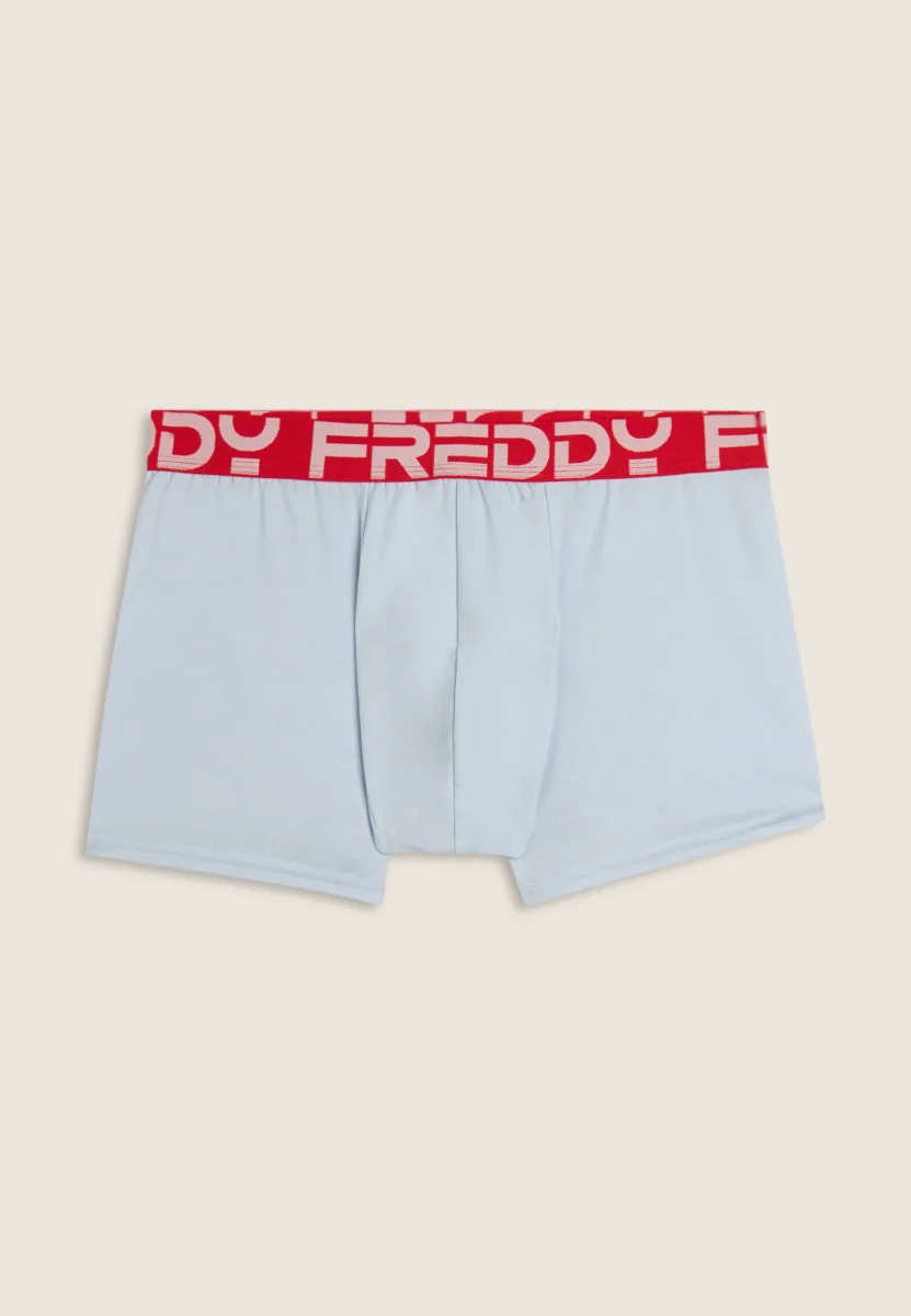 Questi boxer da uomo uniscono praticità e stile con un design moderno e distintivo. L’elastico jacquard colorato, impreziosito dal maxi logo FREDDY ripetuto, dona un tocco di carattere deciso. La vestibilità aderente con gamba corta assicura il massimo sostegno senza rinunciare alla libertà di movimento. Realizzati in tessuto morbido e traspirante, sono perfetti per chi cerca un intimo comodo, curato nei dettagli e dal look contemporaneo.