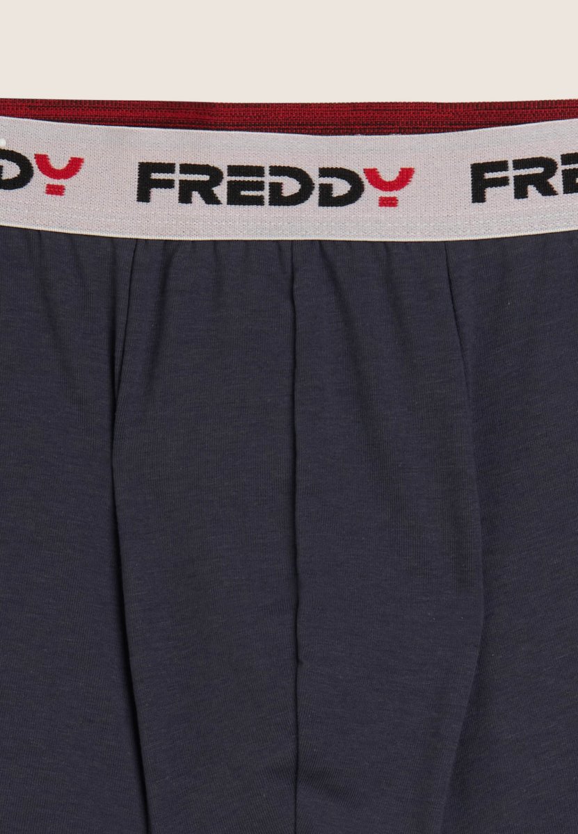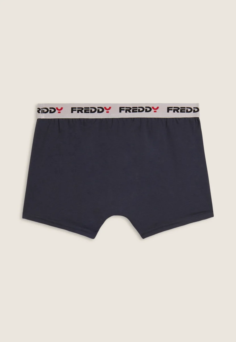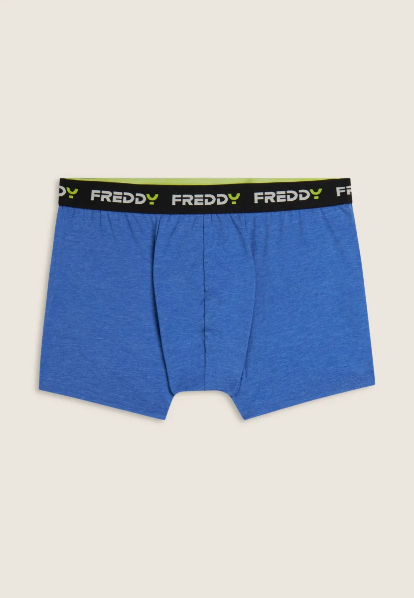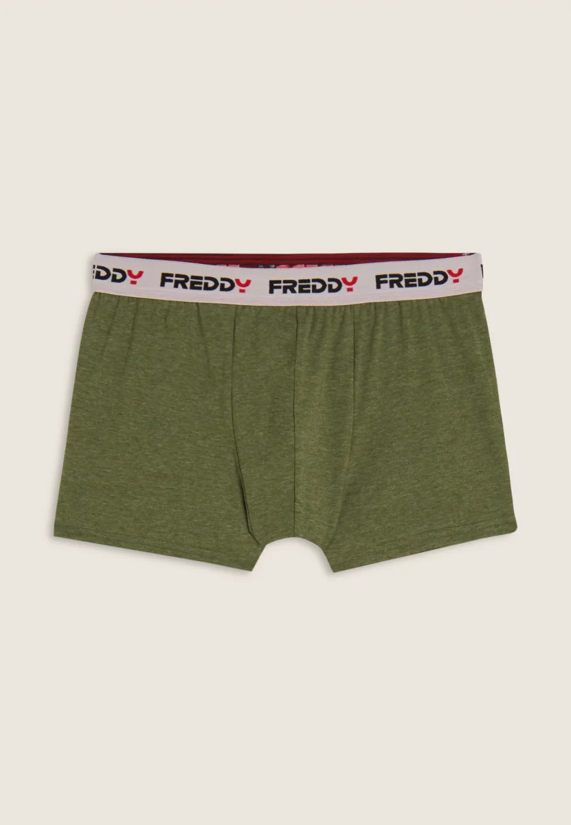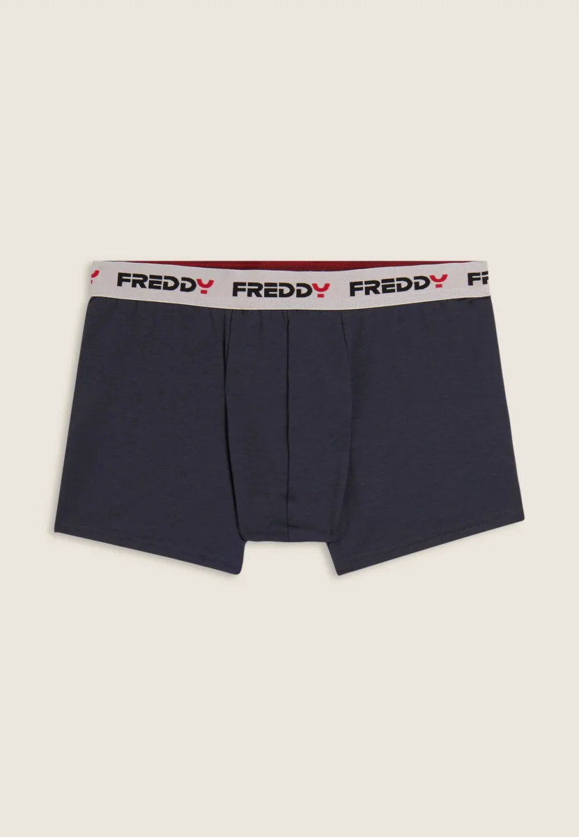 Questi boxer da uomo combinano comfort e design distintivo grazie all’elastico jacquard in contrasto colore, impreziosito dal logo FREDDY ripetuto e dalla caratteristica « Y » colorata. La vestibilità aderente con gamba corta assicura sostegno e libertà di movimento, mentre il tessuto morbido e traspirante garantisce freschezza e comfort per tutto il giorno. Ideali per chi ama un intimo pratico, curato nei dettagli e dal carattere dinamico.