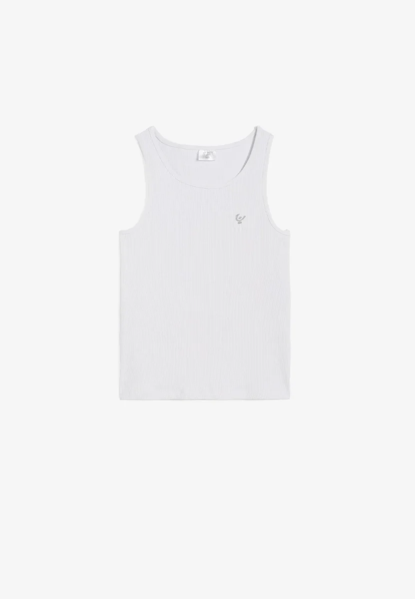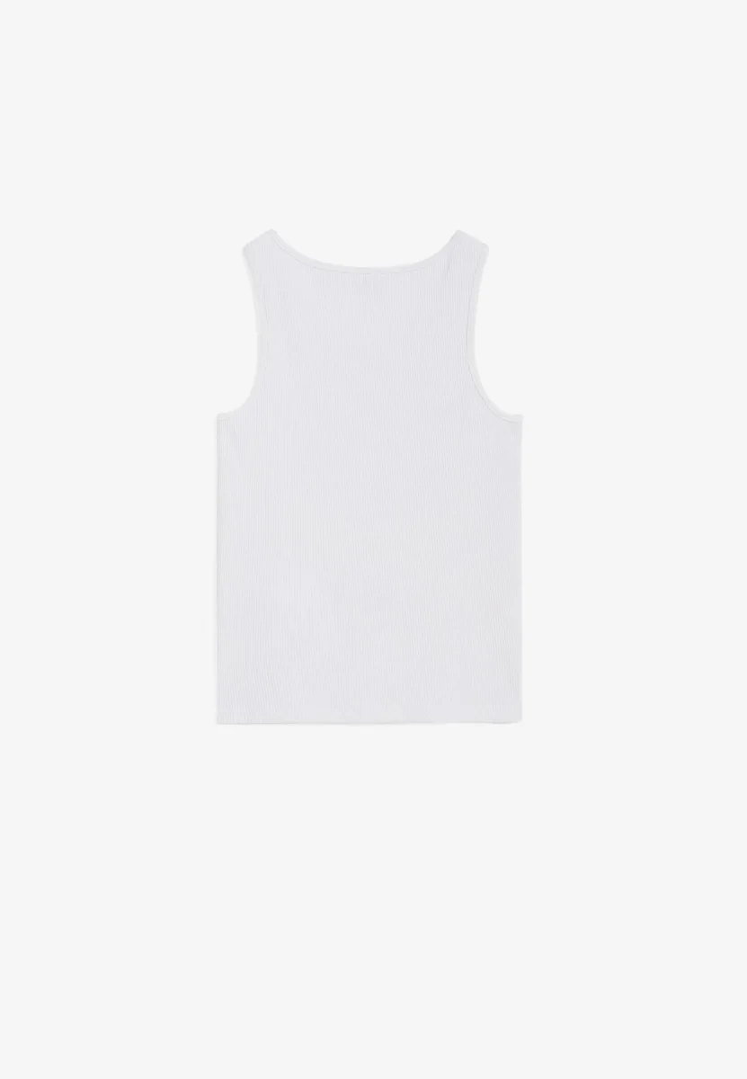 La vestibilità regular e il morbido tessuto a costine di cotone rendono questa canotta da bambina e ragazza l’alleata perfetta per il tempo libero e le attività quotidiane all’insegna del piacere per la libertà di movimento. Il piccolo logo stampato in glitter argento dona un tocco di luce al capo.
