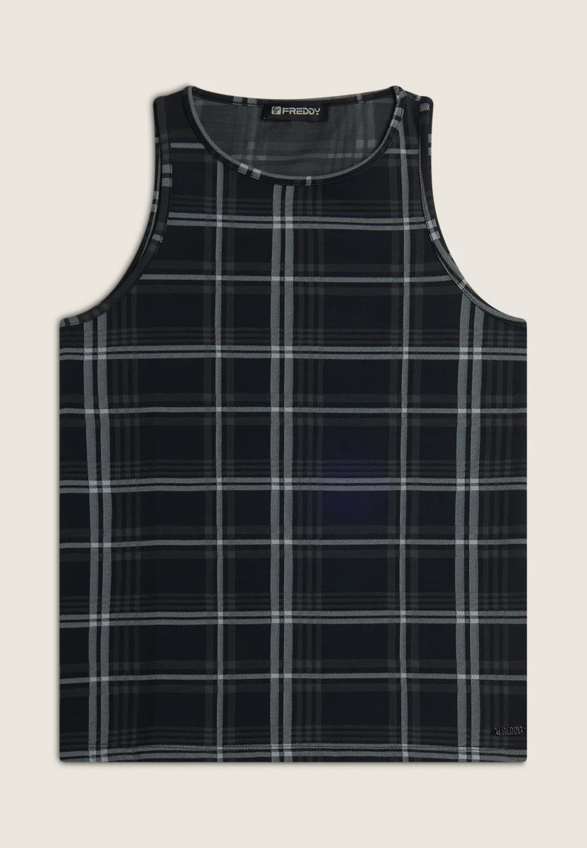 Canotta da donna in tessuto tartan elasticizzato