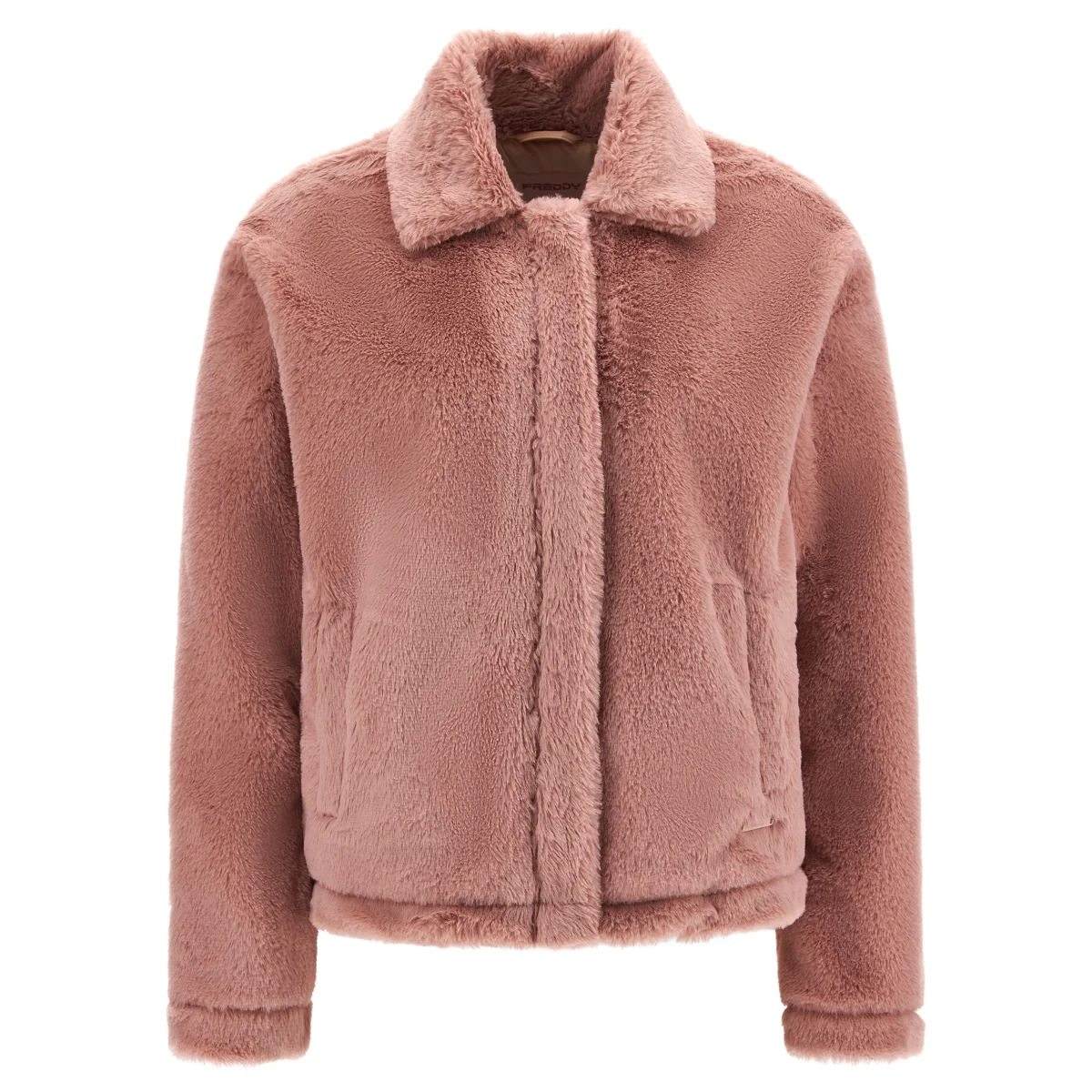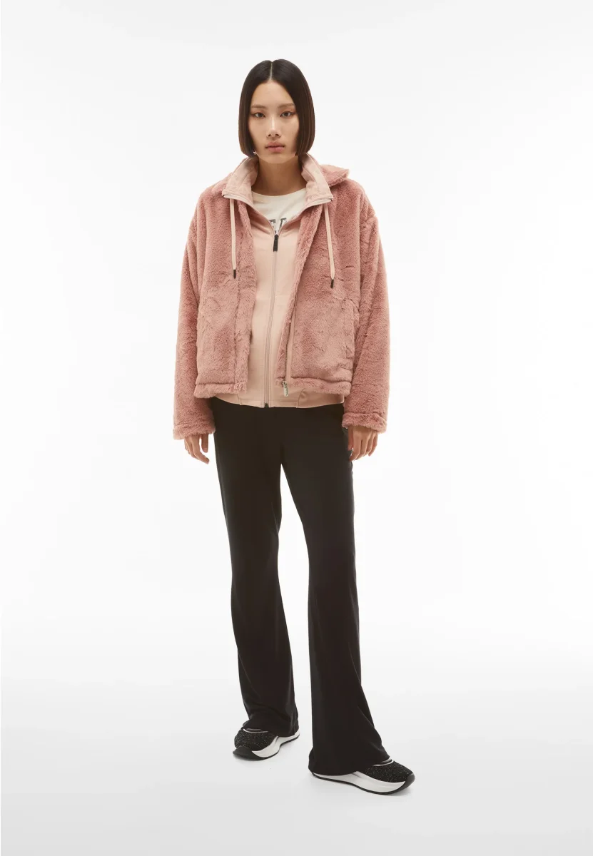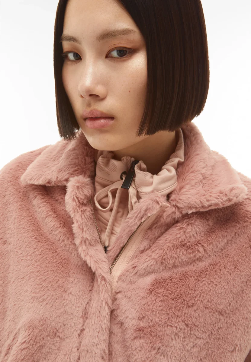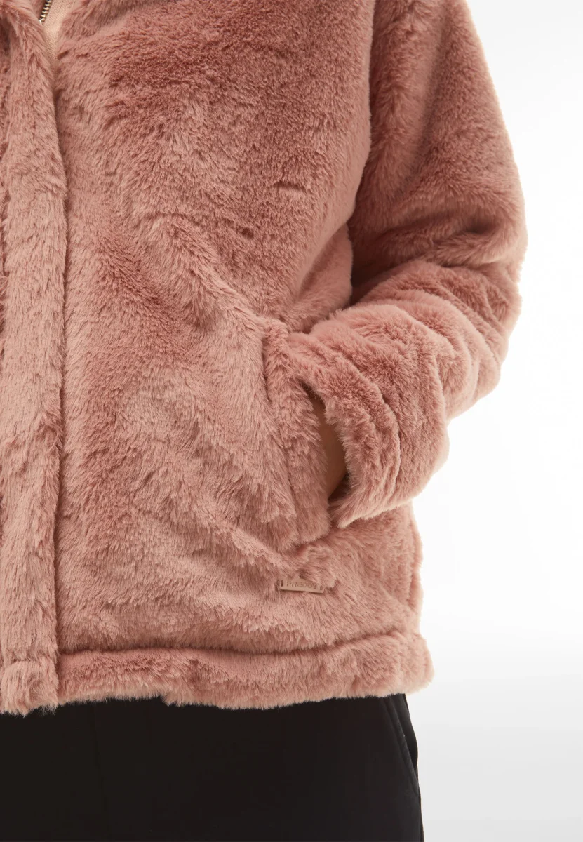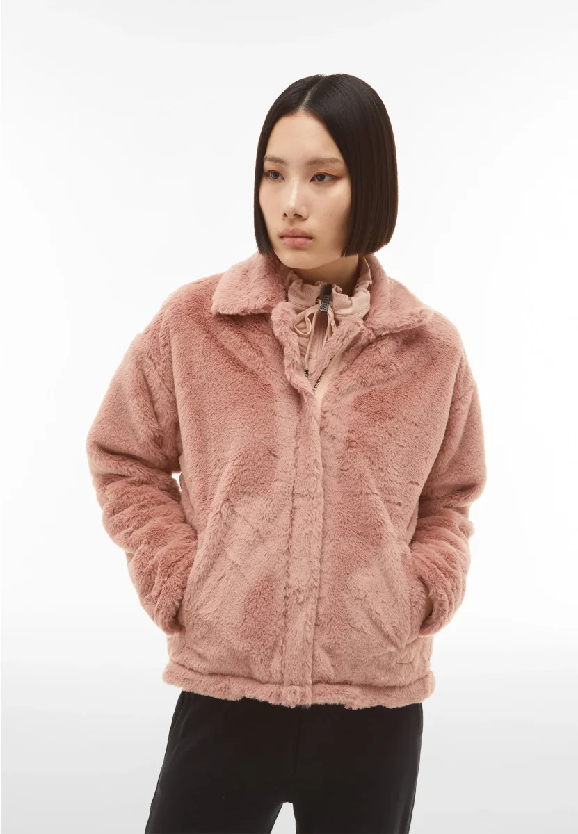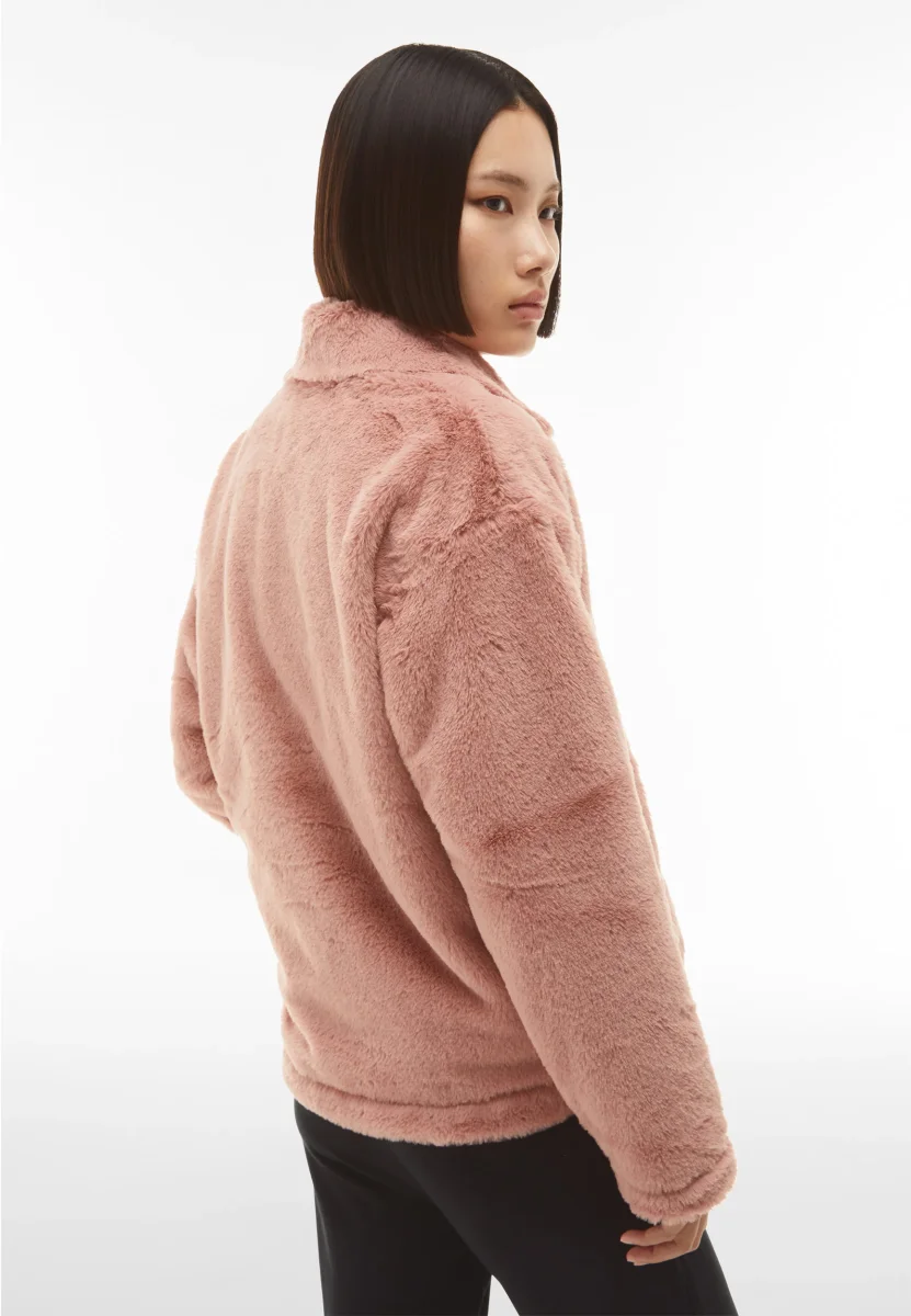 Cappotto corto monopetto con zip in pelliccia sintetica