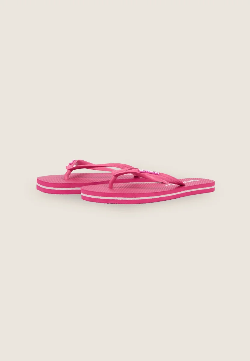 Ciabatte infradito da donna in gomma, perfette per il relax e il tempo libero. Il logo Freddy in contrasto colore decora la fascia e la suola, mentre una sottile riga bianca arricchisce il design. Comode, leggere e versatili, sono ideali per la spiaggia, la piscina o le giornate estive.