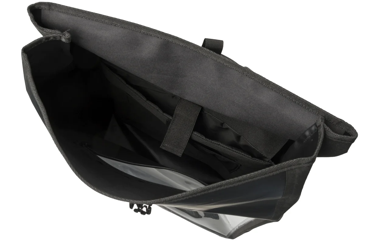 Glissez toutes vos affaires dans le sac à dos Koerier, vérifiez qu’il ne manque rien, fermez le sac et enfourchez votre vélo pour un trajet sûr et confortable.