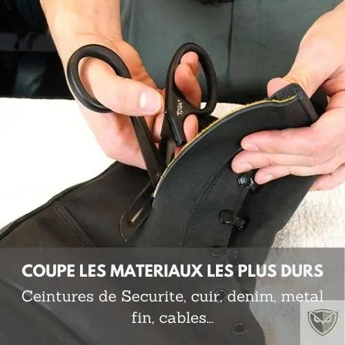 Ces ciseaux de premiers secours sont équipés de lames en acier inoxydable. Les lames possedent des dentelures pour couper certains des matériaux les plus résistants tels que les ceintures de sécurité, le cuir et le denim, et même le métal mince.