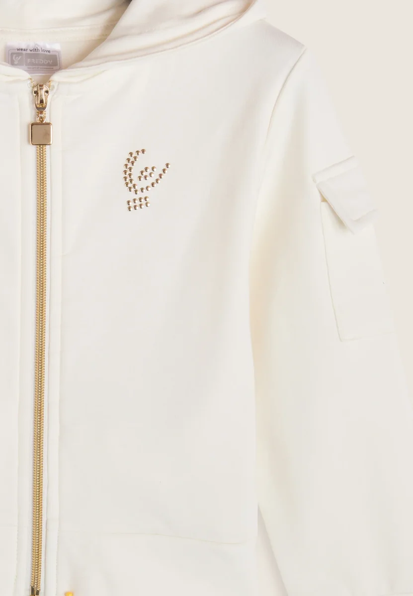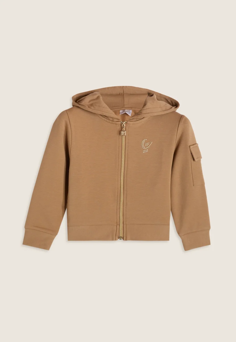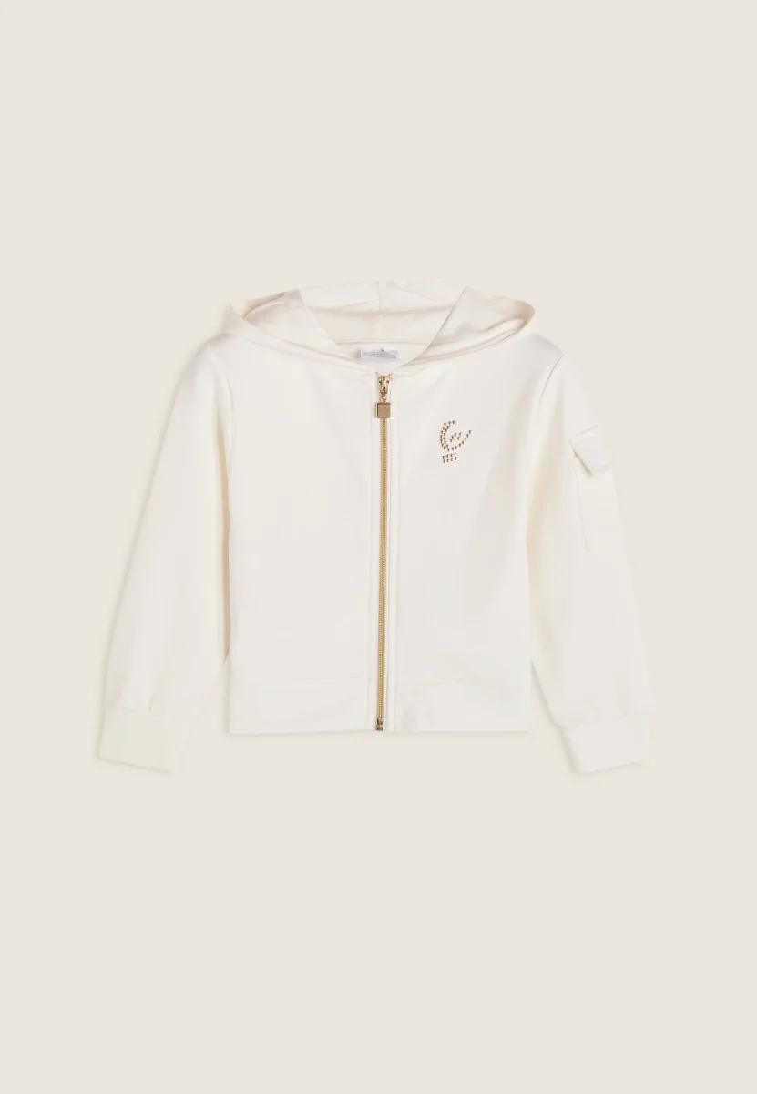 Felpa bambina con zip, cappuccio e dettagli dorati