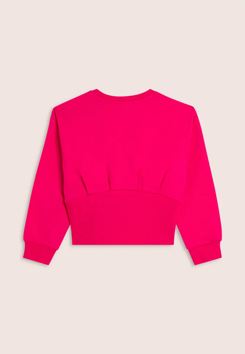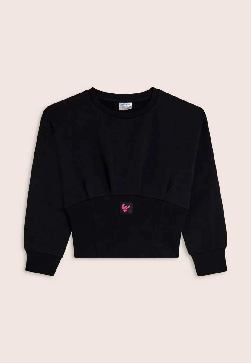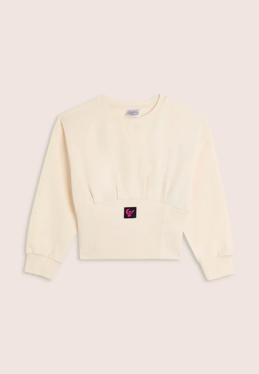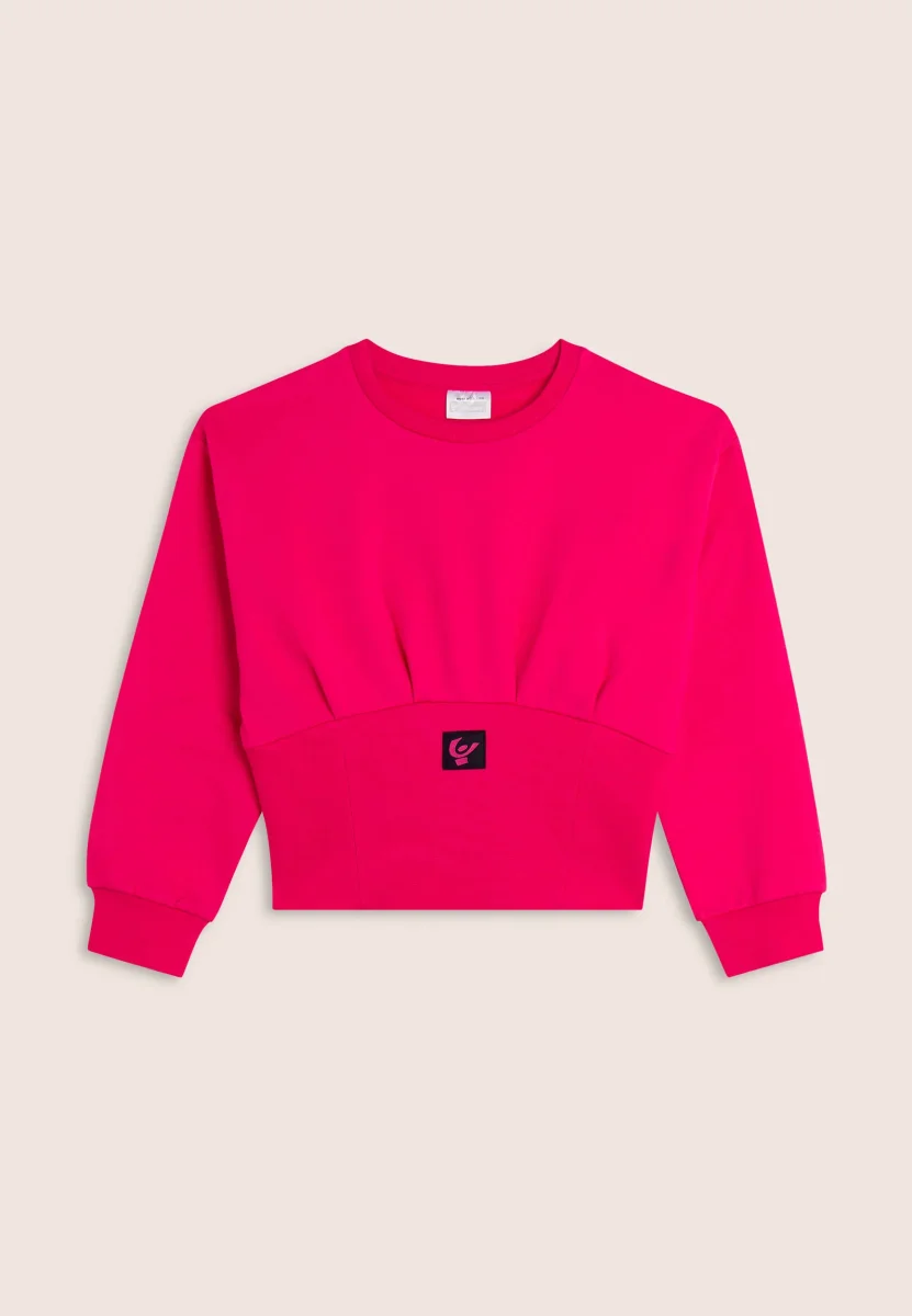 Felpa da bambina dalla vestibilità comfort e dal taglio cropped, perfetta per uno stile moderno e pratico. È rifinita con una maxi fascia sul fondo in costina, dettaglio che aggiunge personalità al design e garantisce una vestibilità stabile. Il modello presenta scollo girocollo e polsini in costina, maniche lunghe e il caratteristico logo « omino » Freddy applicato sulla fascia. Un capo versatile e contemporaneo, ideale per il tempo libero e le attività quotidiane.