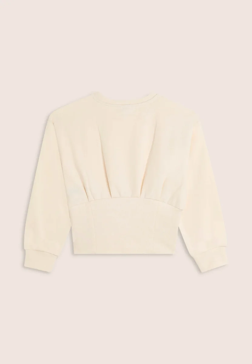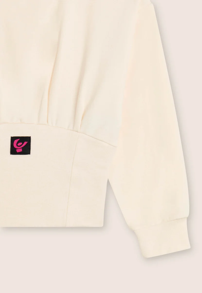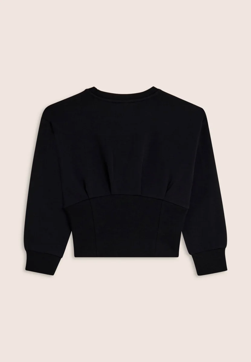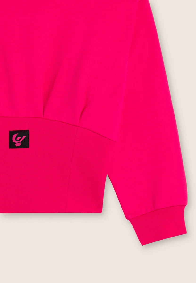 Felpa da bambina dalla vestibilità comfort e dal taglio cropped, perfetta per uno stile moderno e pratico. È rifinita con una maxi fascia sul fondo in costina, dettaglio che aggiunge personalità al design e garantisce una vestibilità stabile. Il modello presenta scollo girocollo e polsini in costina, maniche lunghe e il caratteristico logo « omino » Freddy applicato sulla fascia. Un capo versatile e contemporaneo, ideale per il tempo libero e le attività quotidiane.