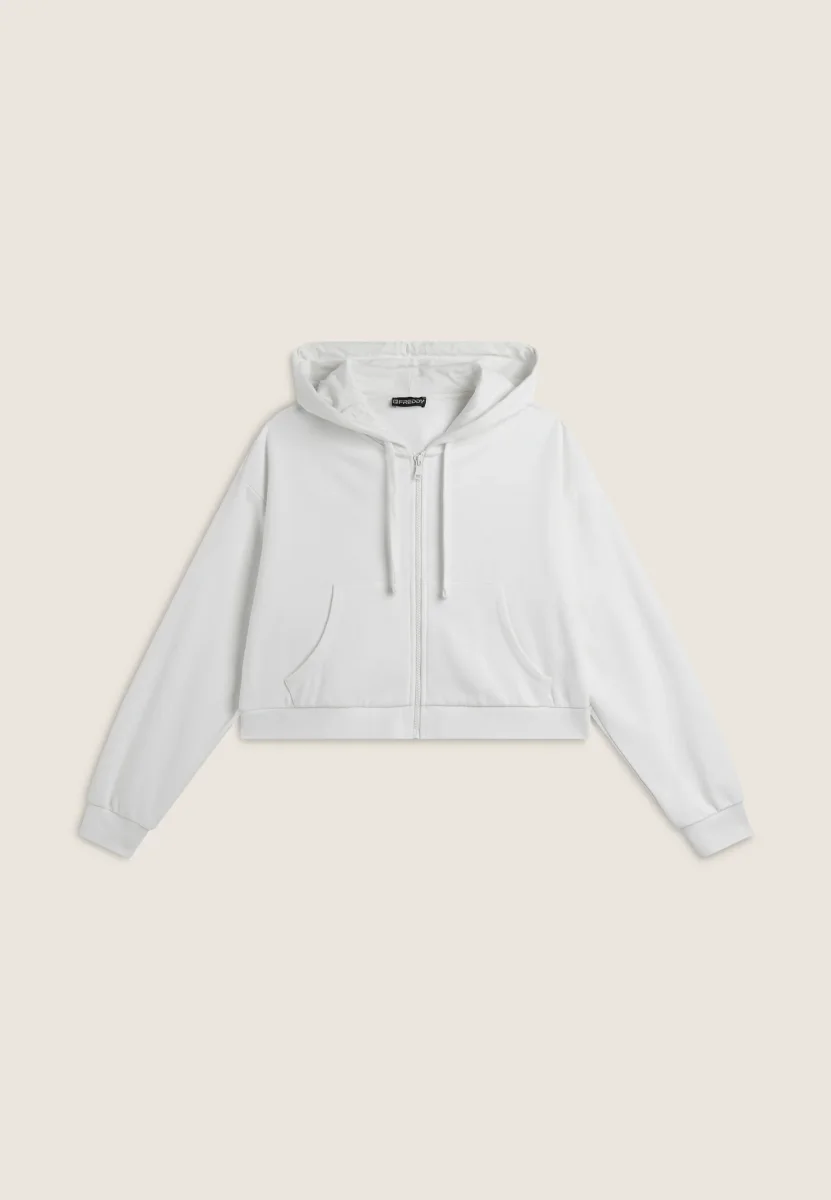 Felpa corta oversize con zip e cappuccio decorato da ricamo