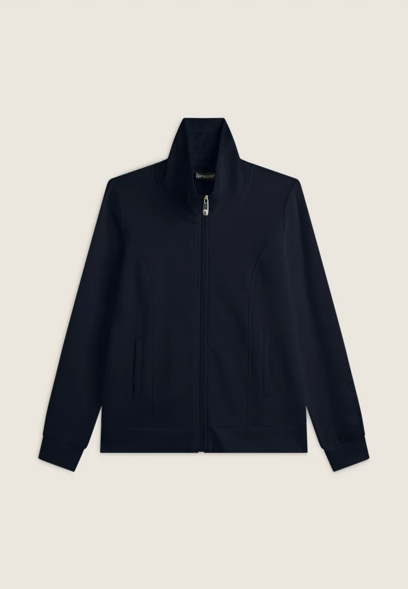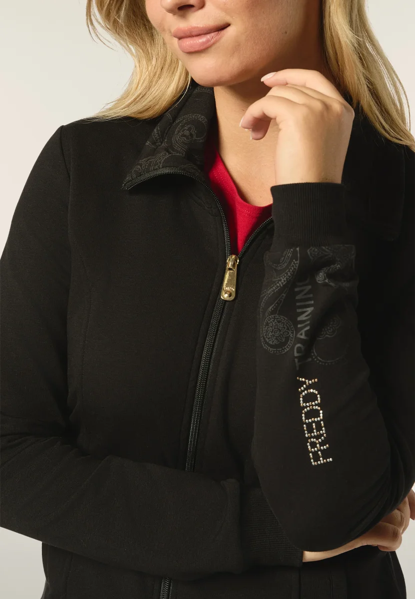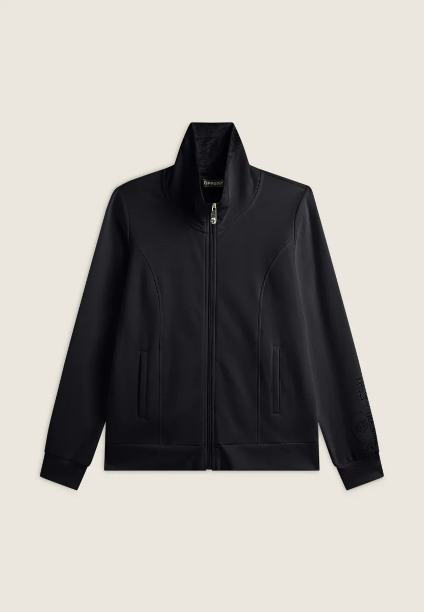Felpa regular fit in felpa garzata con grafica FREDDY TRAINING composta da borchie sul fondo manica contornata da una texture paisley. Tasche interne a filetto e collo alto foderato internamente in tessuto fantasia paisley. Fondo e polsini in costina per una maggiore tenuta quando ti muovi.