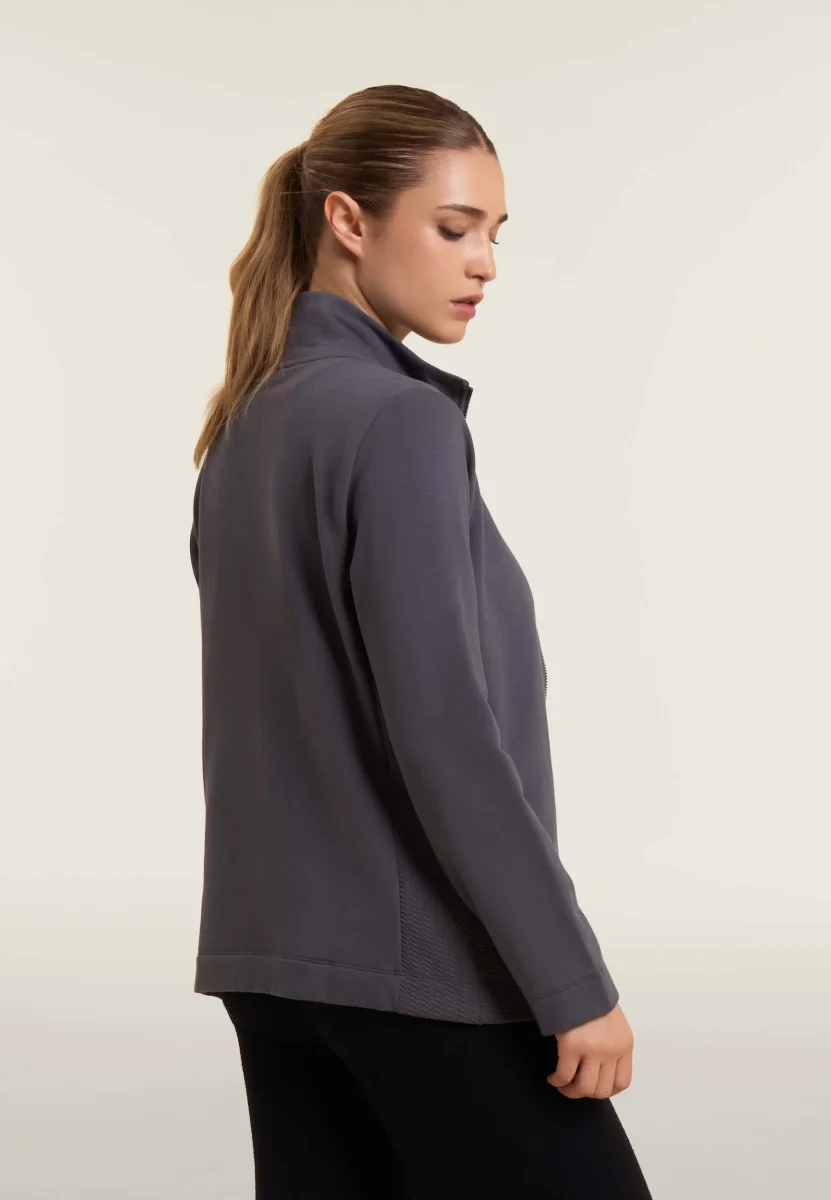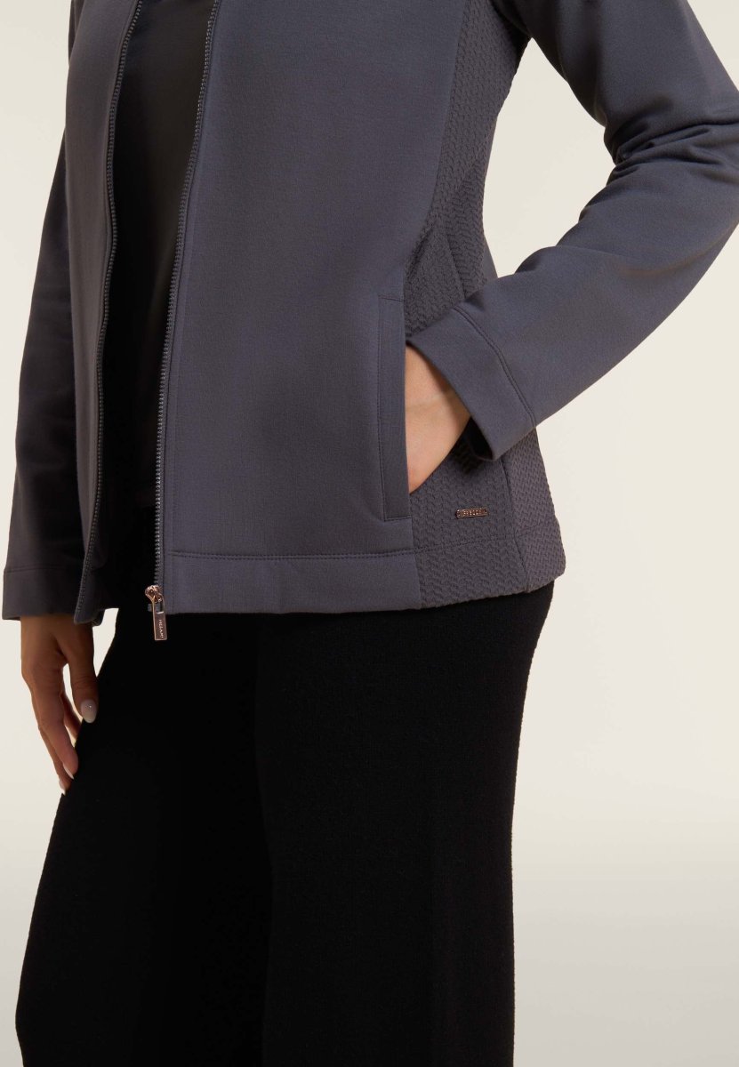 Felpa donna full-zip con inserti in tessuto micro-trecce