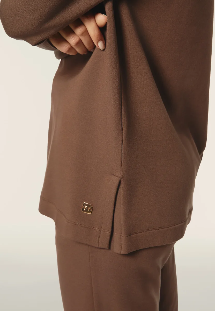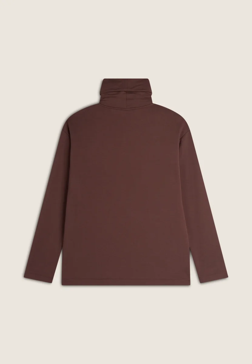 Questa felpa regular fit in calda felpa garzata di viscosa è ideale per un look casual e sofisticato. Il logo applicato sul fondo sinistro e il collo alto a tubo doppiato internamente in morbido jersey aggiungono un tocco unico. Il fondo con piccole aperture laterali sovrapposte completa il design elegante e pratico.