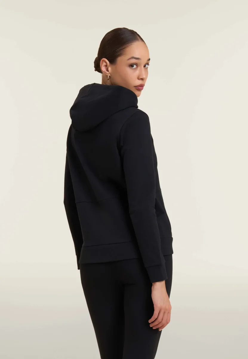 Felpa full zip con cappuccio e logo frontale perlato