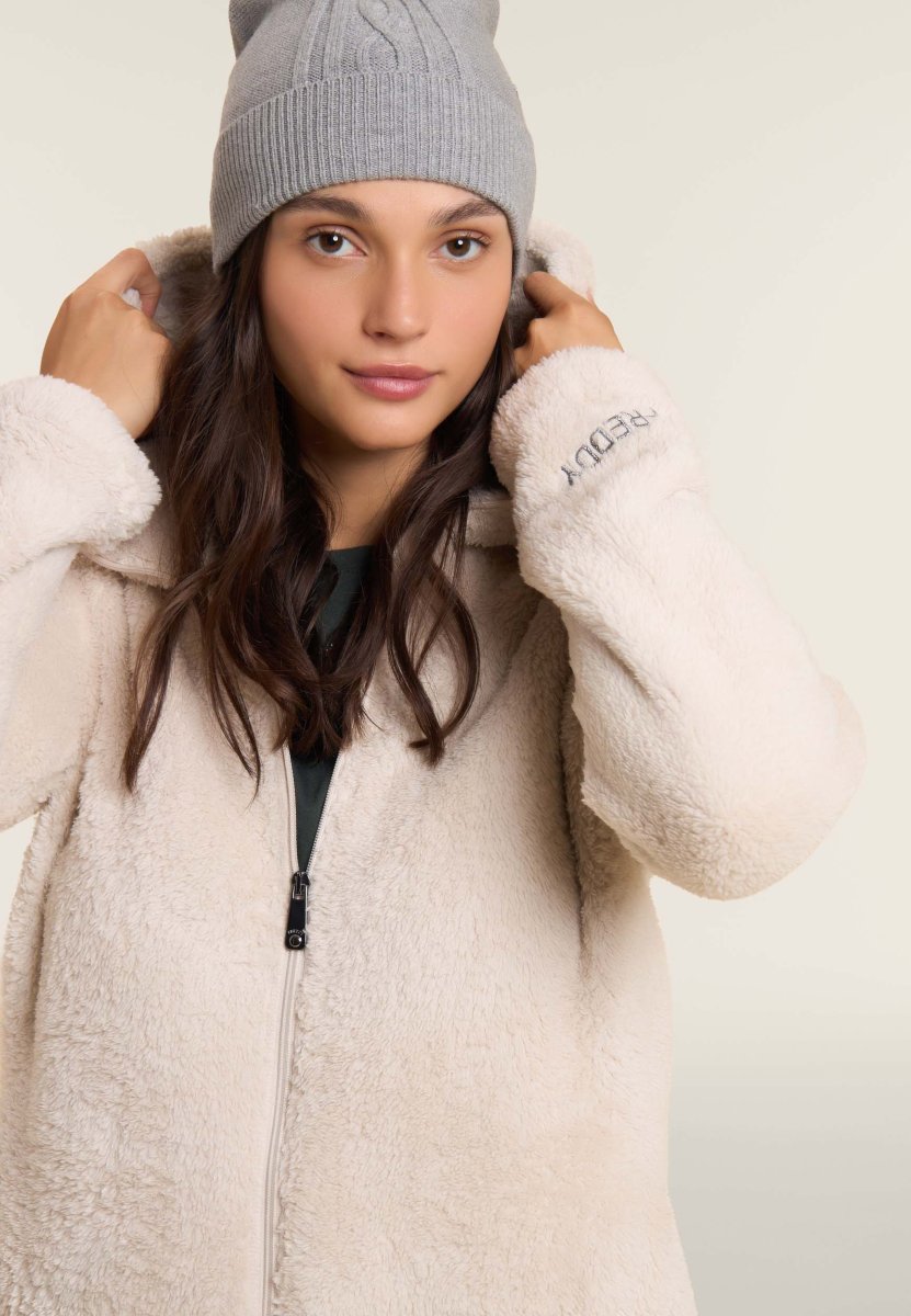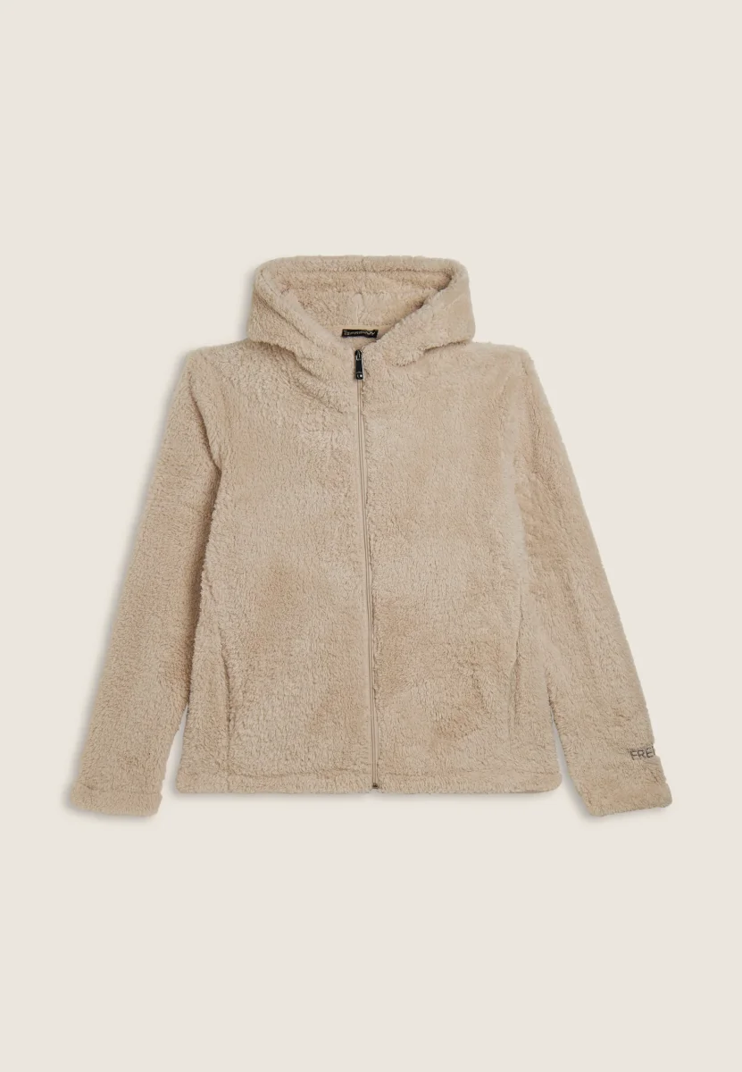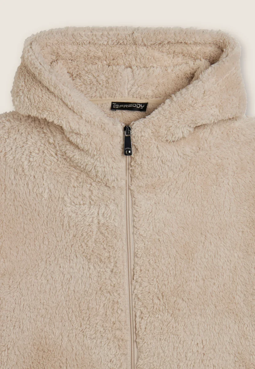 Felpa in pile sherpa con cappuccio e zip