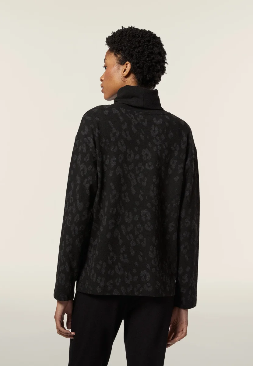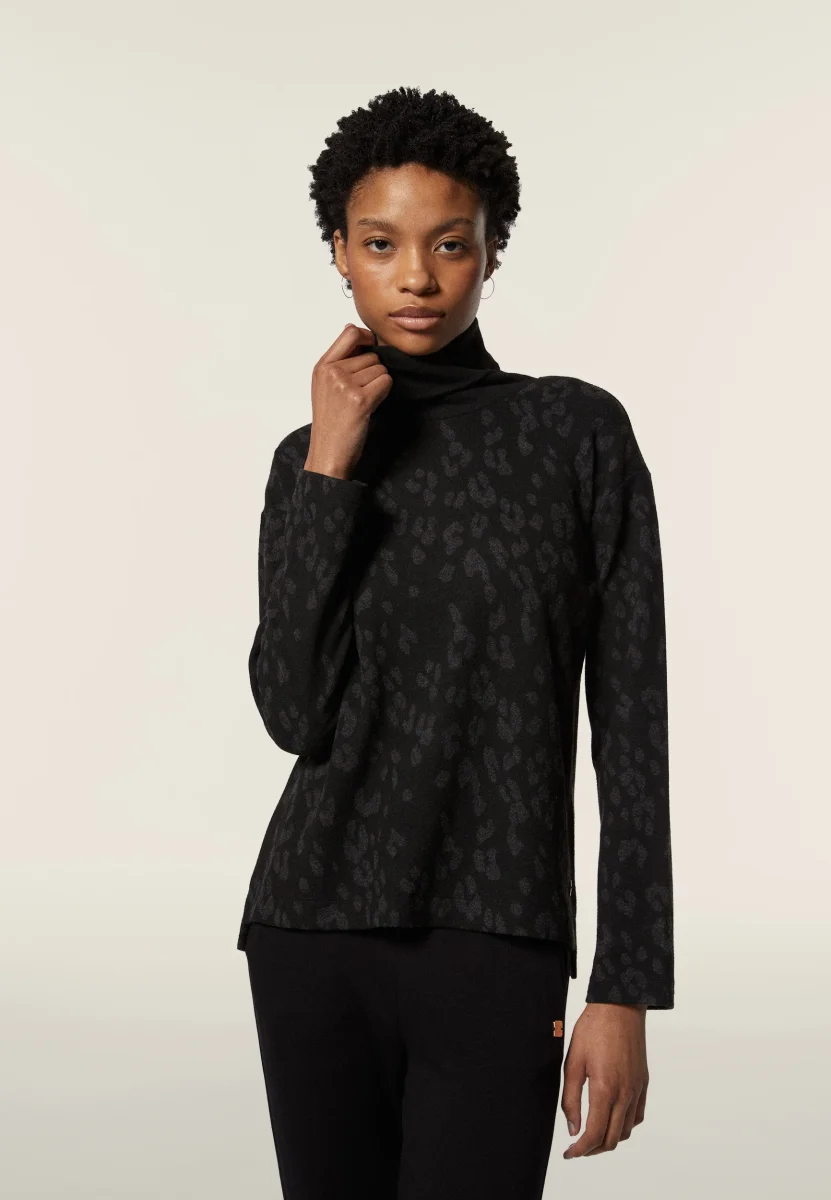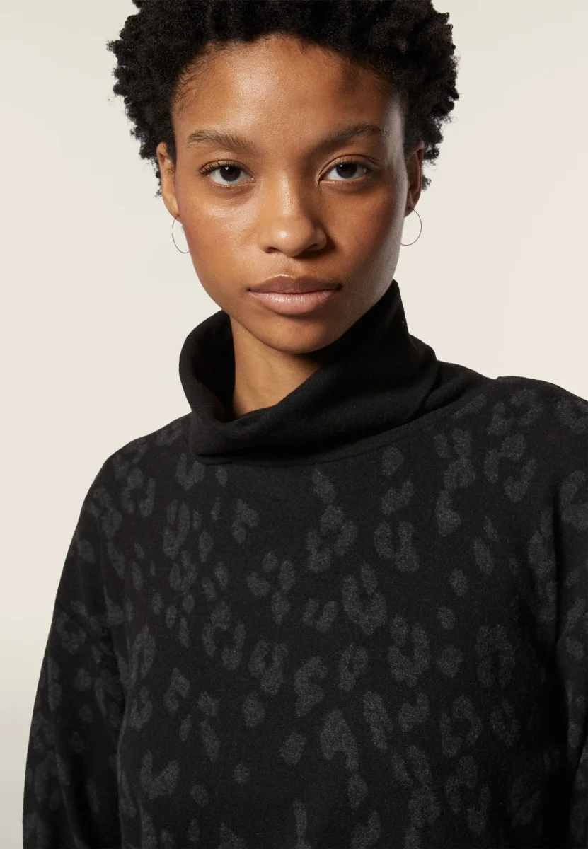 Questa felpa da donna regular fit in felpa interlock di viscosa effetto tricot offre morbidezza e traspirabilità. La fantasia animalier all-over aggiunge un tocco di originalità. Il logo applicato sul fondo sinistro e il collo alto risvoltato completano il design. Fondo più lungo sul retro con aperture laterali per un fit ricercato.