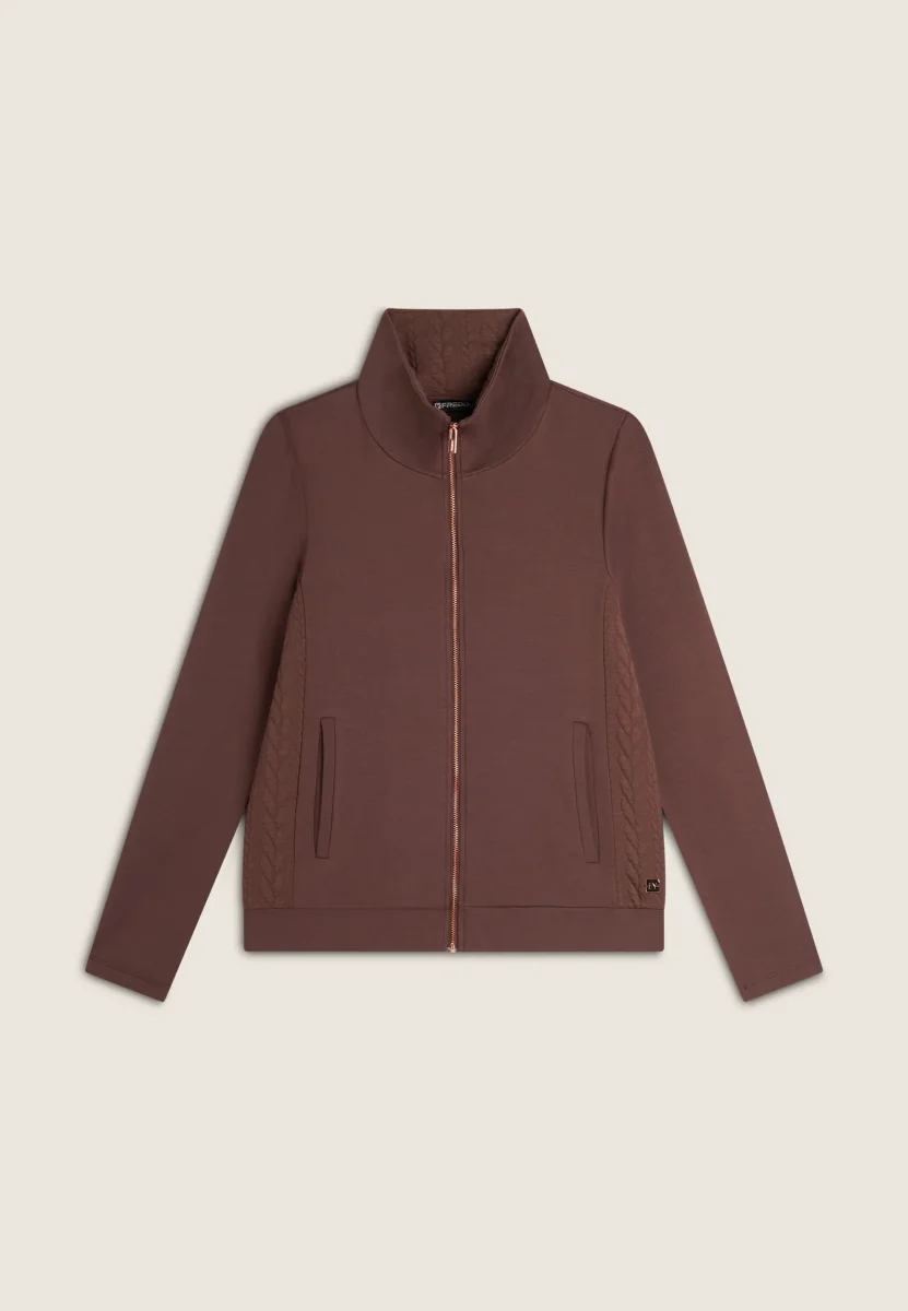 Felpa zip e collo alto con inserti a trecce su fianchi e collo