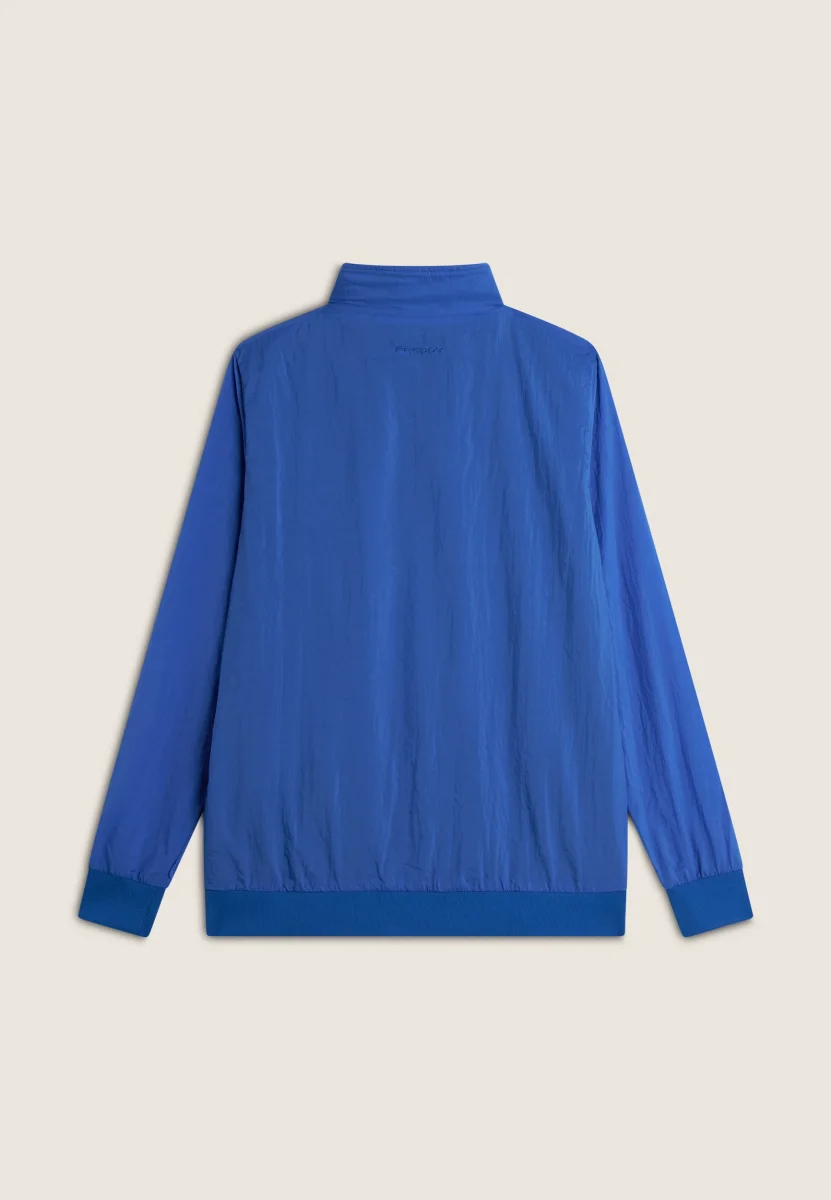 Questa giacca leggera da uomo è realizzata in poliestere, un tessuto resistente e traspirante che garantisce protezione e comfort durante le giornate più fresche. Il collo alto, foderato internamente in morbido cotone, offre un comfort extra, mentre la chiusura full zip e le tasche anteriori con zip assicurano praticità. Il fondo e i polsini in costina conferiscono una vestibilità perfetta e ben definita. Il logo ricamato sul cuore aggiunge un tocco di stile a questo capo versatile, ideale per un look casual e dinamico.
