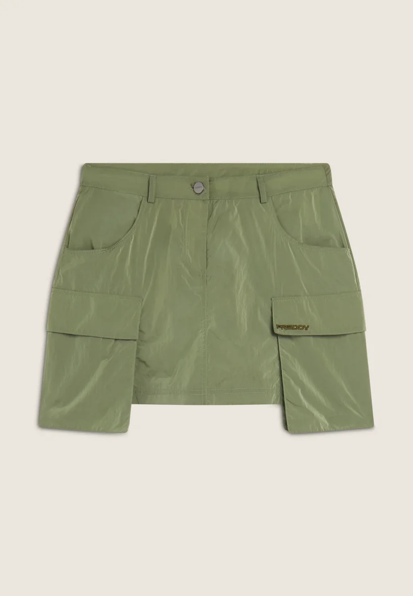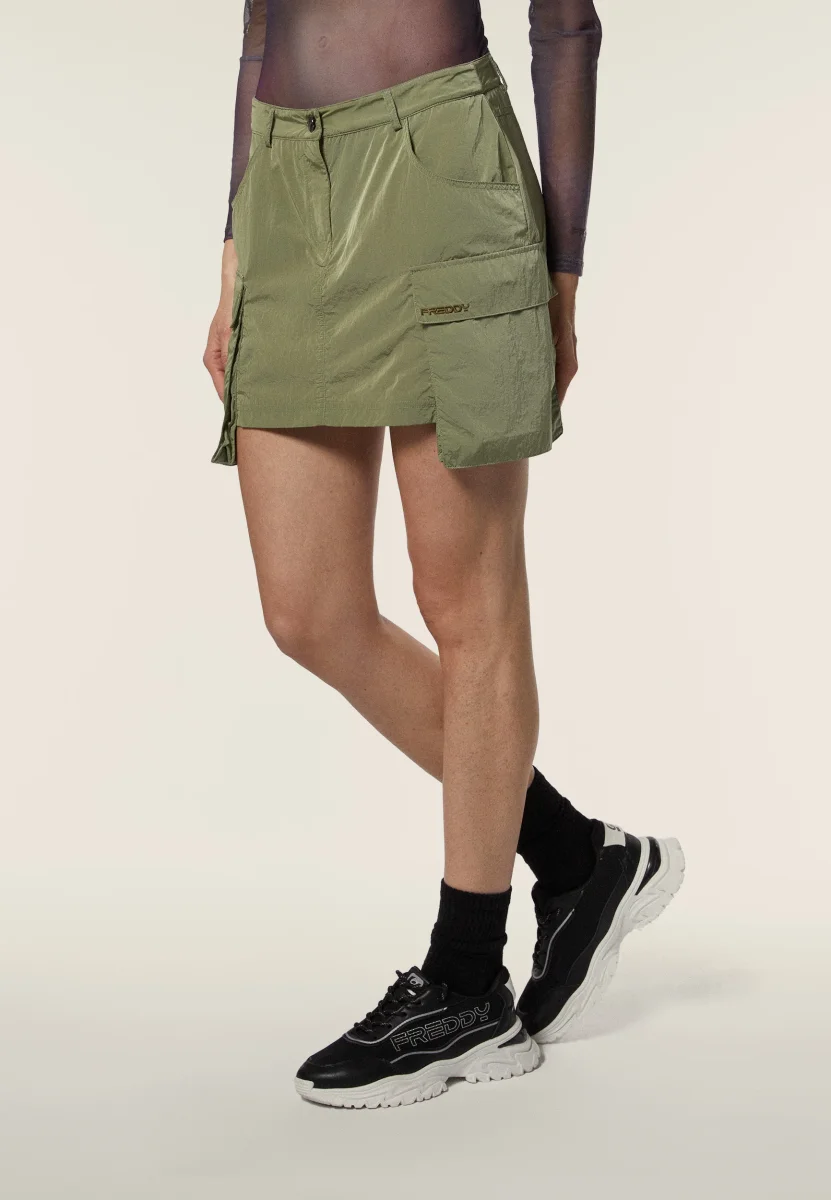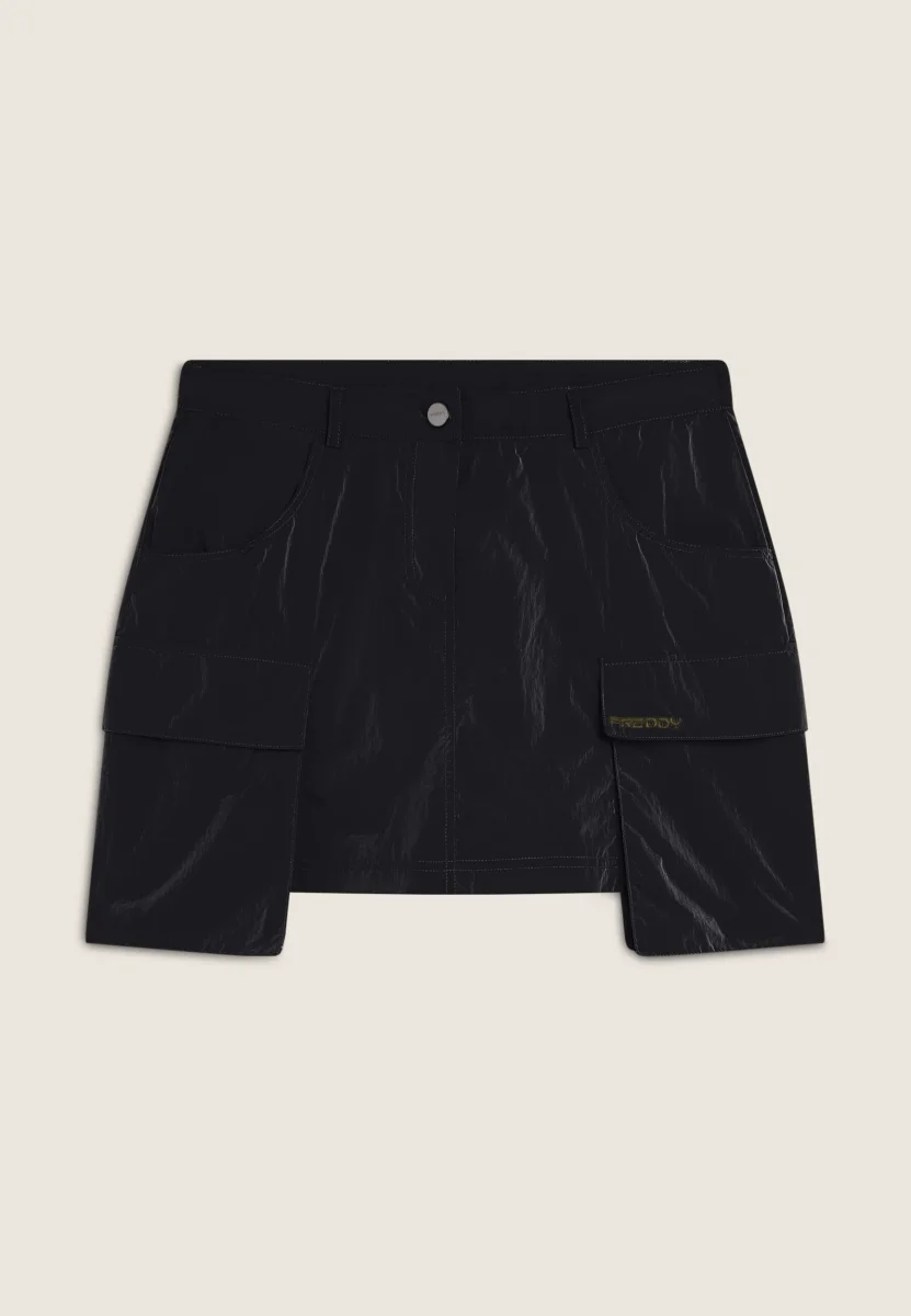 Gonna corta in nylon navetta con tasconi