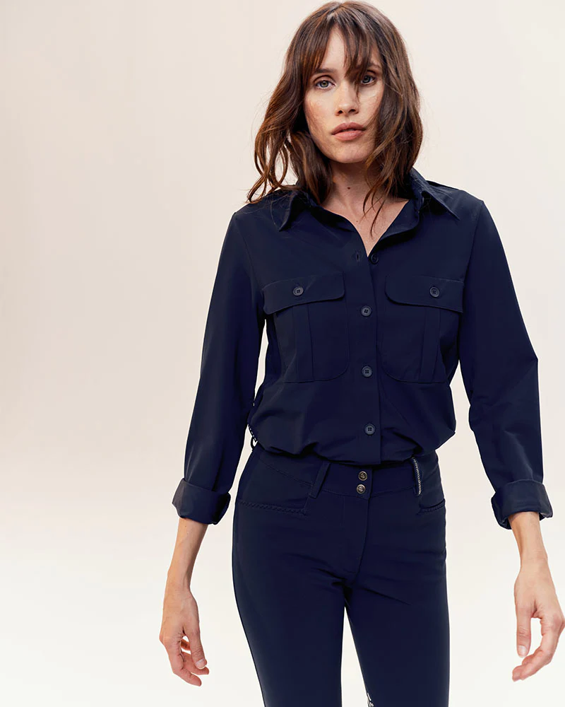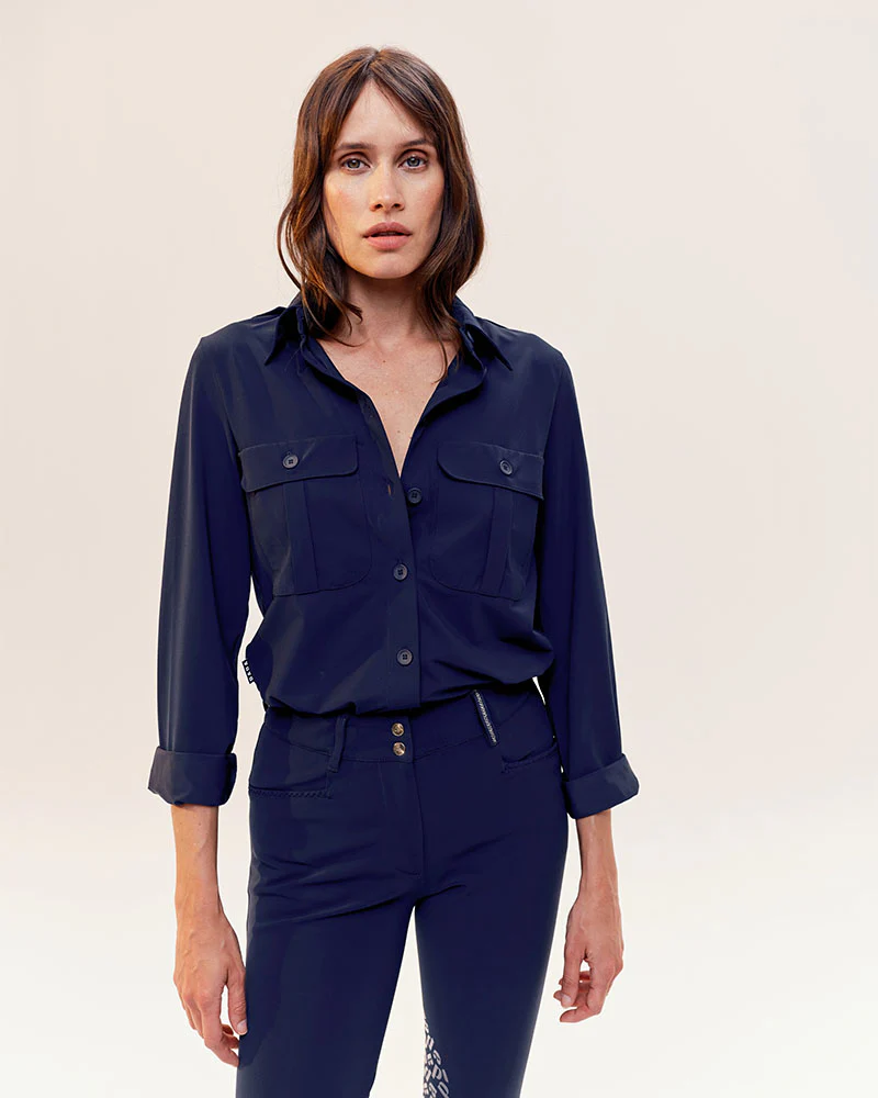Chemise saharienne très confortable et respirante. Sa coupe et ses détails lui permettent d’être portée aussi bien à cheval que pour vos sorties en ville. Une pièce complètement versatile et intemporelle.