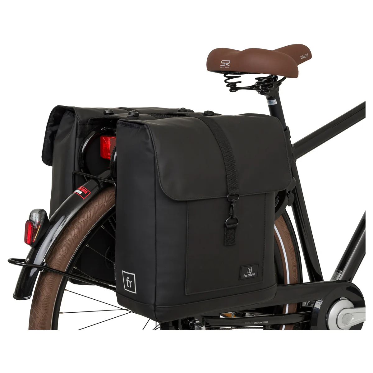 Le Jaxx a été conçu pour les cyclistes urbains et apporte style, qualité et confort à vos trajets quotidiens à vélo. Les matériaux ont été soigneusement sélectionnés pour protéger votre ordinateur portable ou votre tablette du vent et des intempéries. Vous pouvez ainsi vous concentrer uniquement sur votre trajet pour arriver rapidement et en toute sécurité à destination. Son design minimaliste fait de ce sac un accessoire élégant qui attire tous les regards. Caractéristiques : Polyester enduit hydrofuge – Avec réflexion à l’arrière pour une visibilité optimale – Fermeture des compartiments principaux par cordon – Entièrement doublé – Poche intérieure zippée – Rabat pouvant être fermé à l’aide d’agrafes et de velcro – Facile à fixer à l’aide de sangles et de velcro – Sacoche de vélo pouvant être utilisée avec un éclairage LED et des sangles à dégagement rapide – Grand compartiment avant – Panneaux arrière et dessous renforcés – Anneaux de drainage dans le fond. L’eau qui pénètre dans le sac peut s’écouler – S’adapte à la plupart des porte-bagages – Convient aux vélos électriques dont la batterie est placée sous le porte-bagages – Peut être utilisé en combinaison avec une entretoise (disponible en option) Cela empêche le sac double pour vélo de se prendre dans les rayons.