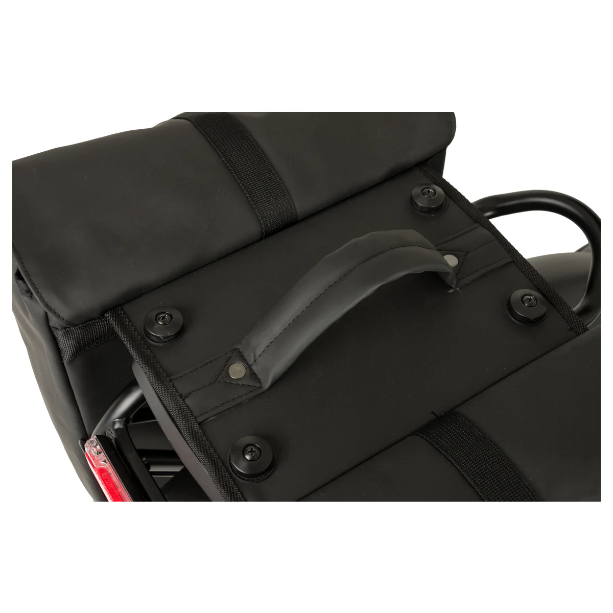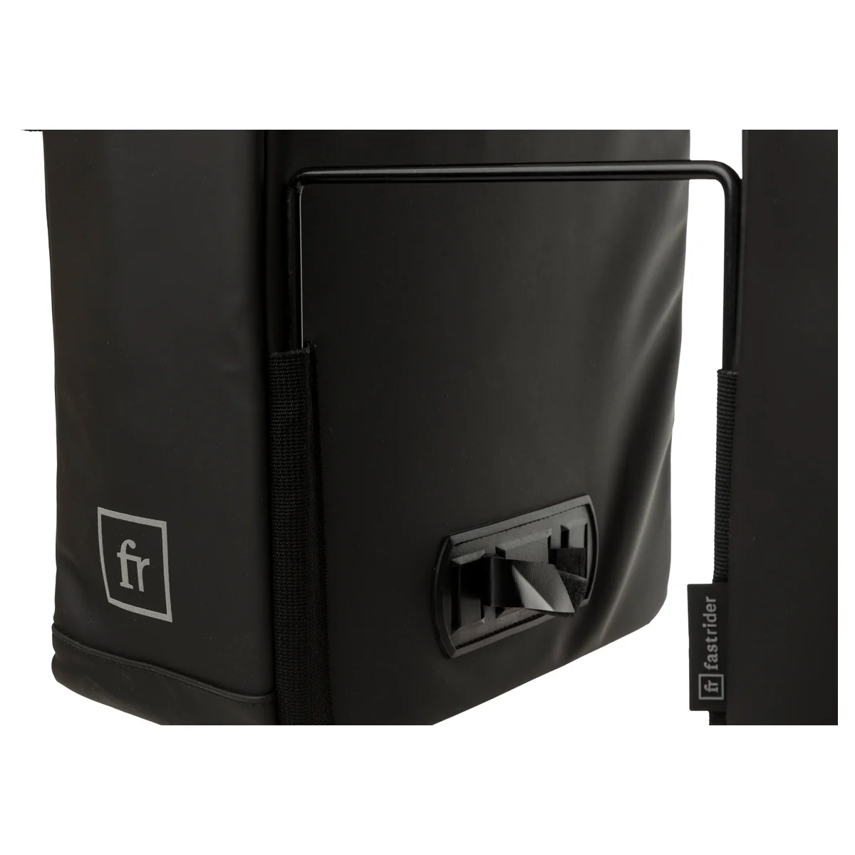 Le Jaxx II est un sac à vélo populaire et élégant de Fastrider. Ce sac à vélo double est recouvert d’un revêtement noir mat, ce qui lui confère un look tendance.Le sac a une capacité de 28 litres.Il est muni d’une fermeture à rabat avec boucle et velcro.Le sac est facile à fixer au porte-bagages grâce au système de fixation MIK préassemblé.Il y a un compartiment de rangement supplémentaire à l’avant du sac, et à l’intérieur, un petit compartiment de rangement avec fermeture à glissière.La doublure intérieure du sac peut être fermée à l’aide d’un cordon. Le sac est renforcé à l’arrière.À l’arrière du sac, il y a une bande réfléchissante en forme du logo Fastrider.Optez pour le confort et la qualité avec le sac à vélo double Jaxx II, sans compromettre le style.