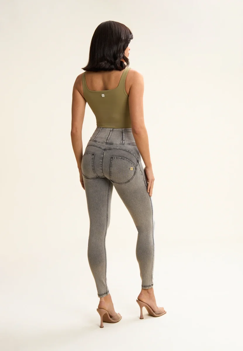 Jeggings push up della linea WR.UP® a vita alta in morbido jersey effetto denim elasticizzato e sostenibile, realizzato con cotone organico ed elastan riciclato: una scelta green firmata Freddy per promuovere il cambiamento e sostenere il benessere del pianeta.