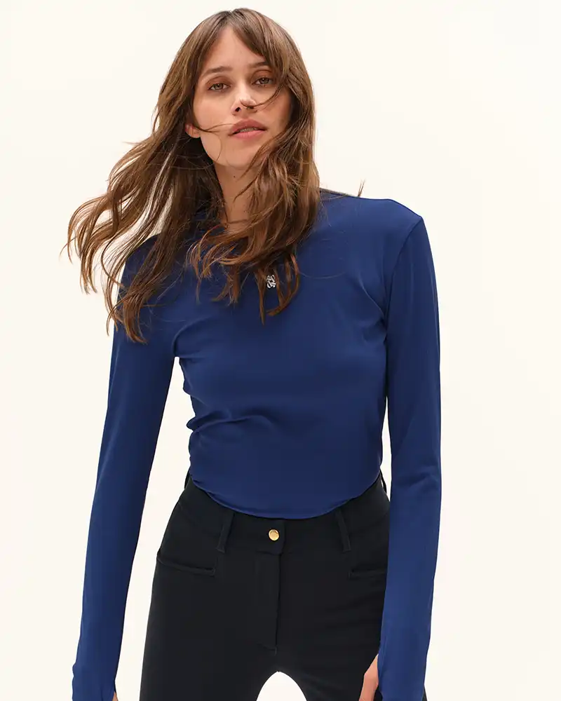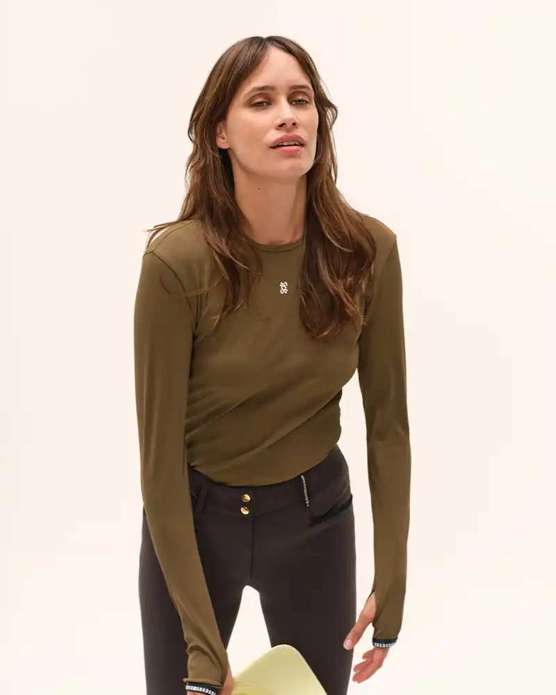 T-shirt technique d’équitation à manches longues – Respirant, côtelé et ultra-confortable grâce à sa coupe ajustée et ses passe-pouces pratiques. Parfait pour les cavalières en quête de performance et d’élégance
