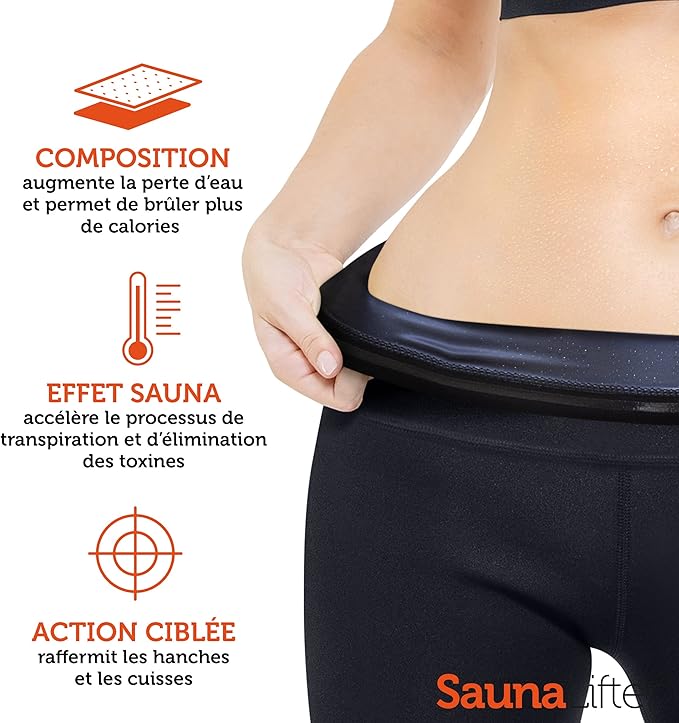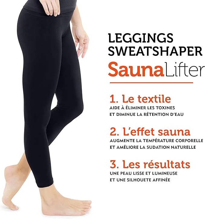 Le legging minceur SWEAT SHAPER BY SYNERFIT augmente et préserve naturellement la température du corps pour transpirer et éliminer les toxines sur le ventre, les fesses, les cuisses et les mollets. La circulation sanguine est accélérée et la peau décongestionnée, purifiée, plus ferme et moins marquée par la cellulite.