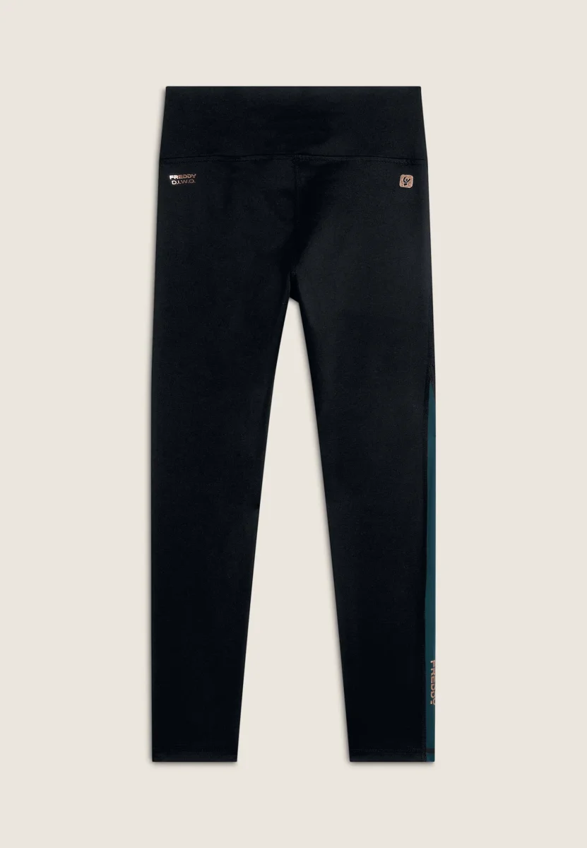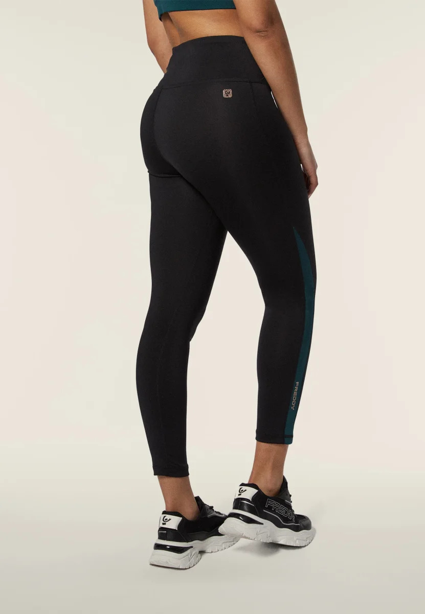 Questi leggings dalle alte prestazioni coniugano tecnologia e stile.Hanno un elegante design a incrocio della fascia in vita e sono decorati dai piccoli loghi color bronzo. Sono realizzati in tessuto tecnico traspirante D.I.W.O.® Poliestere ecologico, ottenuto da bottiglie di plastica riciclate e trasformate in nuova fibra. La lunghezza 7/8 alla caviglia e la vita alta […]