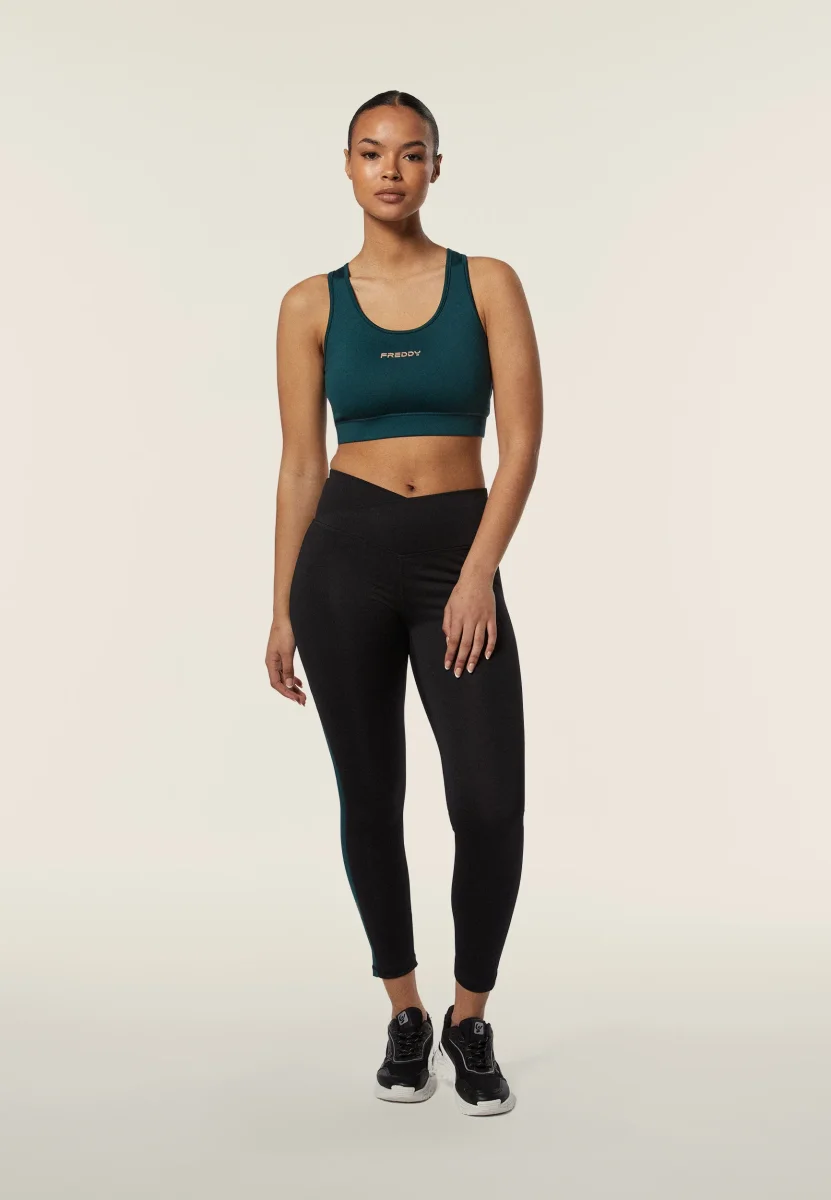 Leggings 7/8 in tessuto tecnico con vita alta a incrocio
