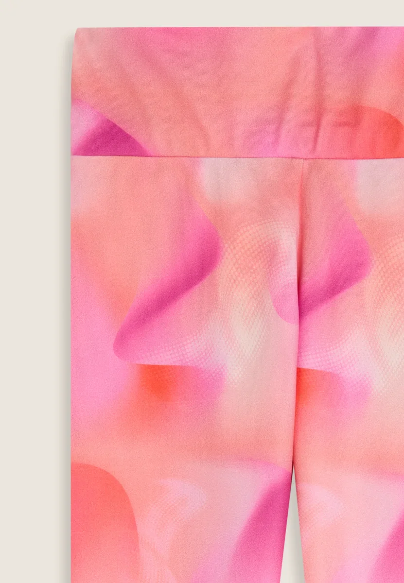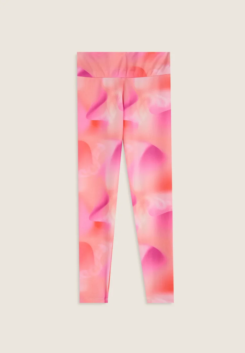 Vivaci e funzionali, questi leggings da bambina in tessuto tecnico sono ideali per il tempo libero e le attività quotidiane. La fantasia all-over sfumata nei toni rosa e arancio dona energia al look, mentre il tessuto tecnico favorisce la traspirazione e si asciuga rapidamente, mantenendo la pelle fresca e asciutta. La fascia in vita assicura una vestibilità stabile e confortevole durante ogni movimento. Un capo comodo e contemporaneo, pensato per accompagnare le giornate attive con stile.