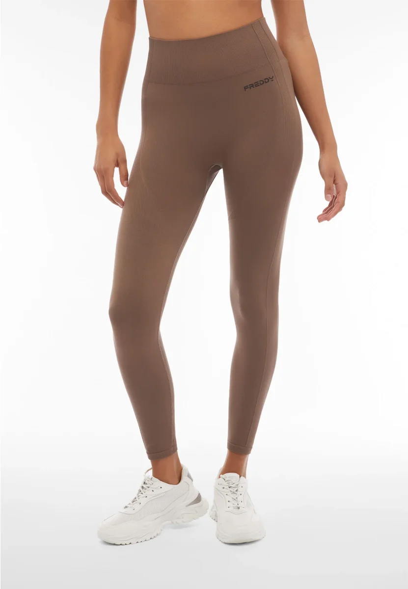 Il modello ha vita alta con fascia in costina per una maggiore tenuta quando ti muovi e fondo bordato in costina. Gli inserti in costina sui fianchi e sul retro del capo, assieme al design a cuore del carré posteriore sottolineano e sostengono naturalmente le tue curve. Il logo metallizzato stampato sul fianco posteriore destro e il piccolo logo FREDDY jacquard sul fianco anteriore sinistro completano i dettagli di stile.