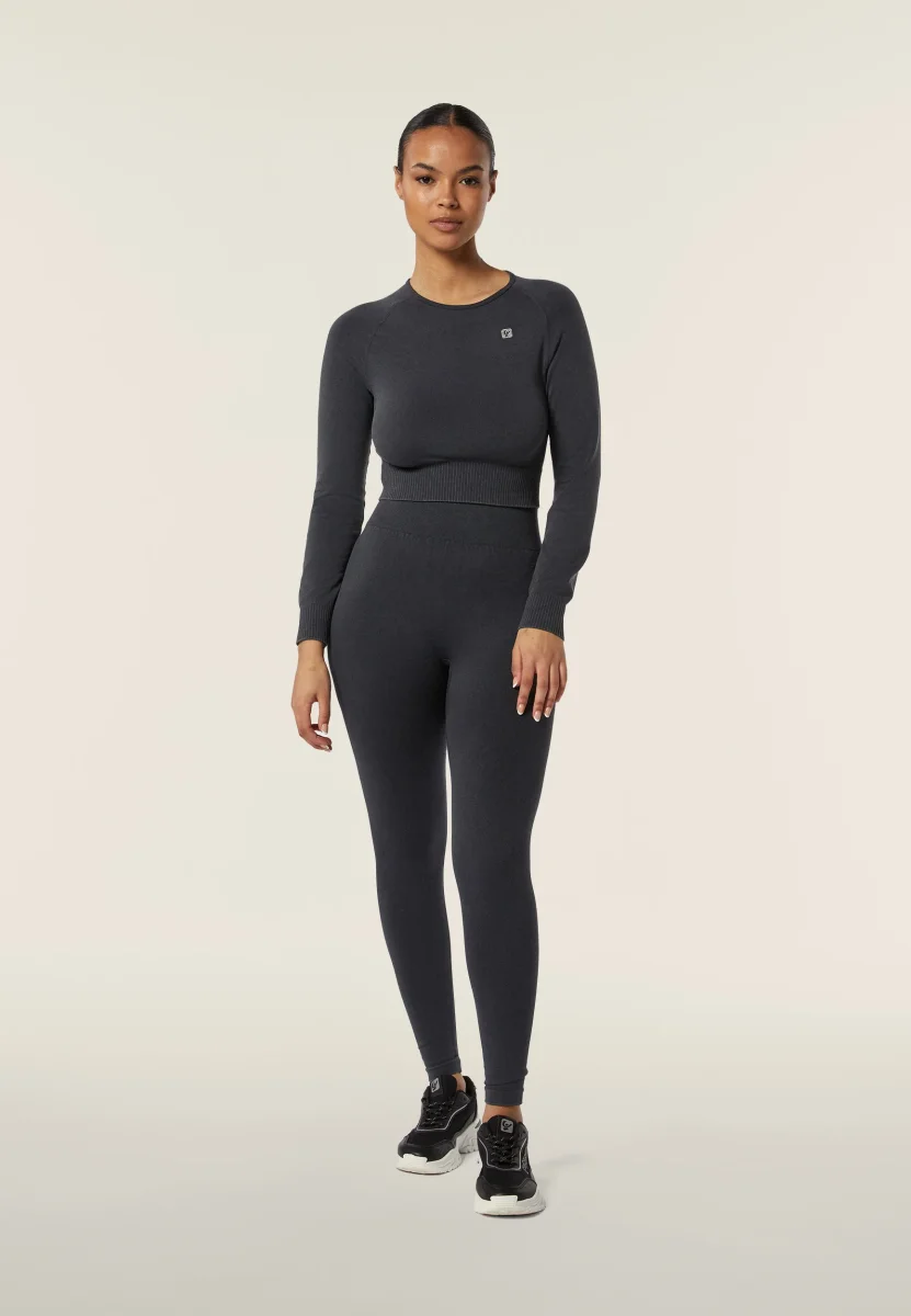 Stile e funzionalità per la maglia corta in vita con maniche lunghe.