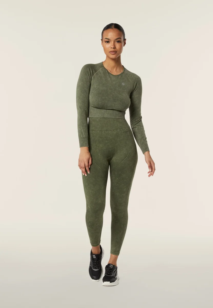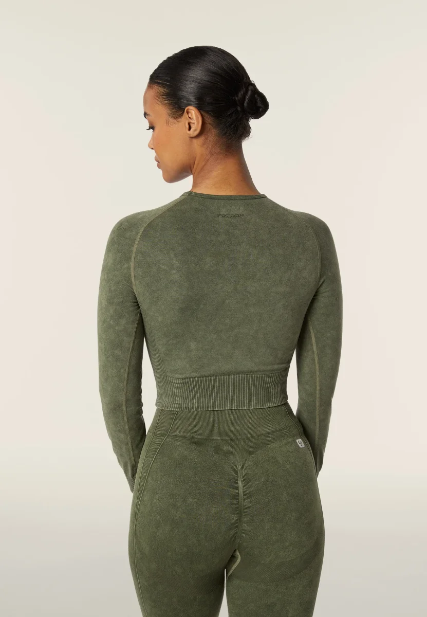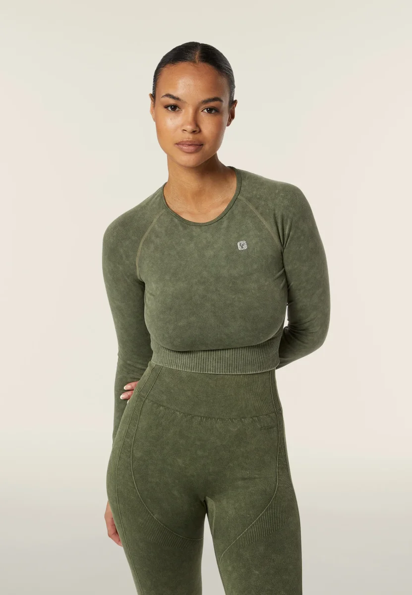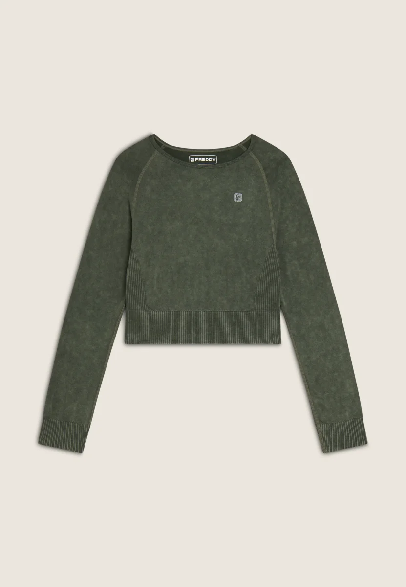 Maglia corta con maniche lunghe tessuto seamless ice wash