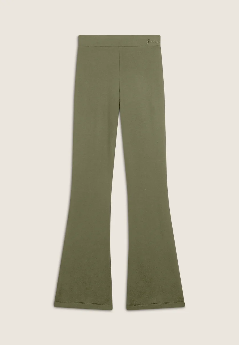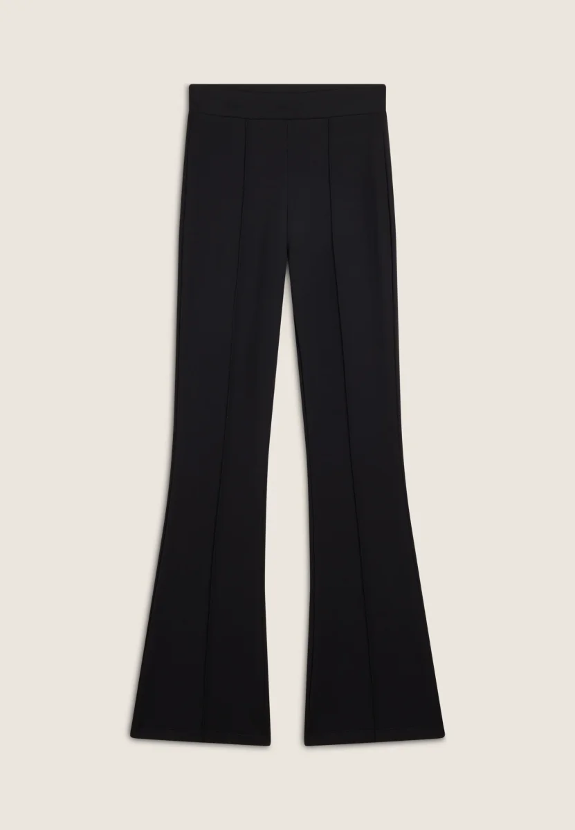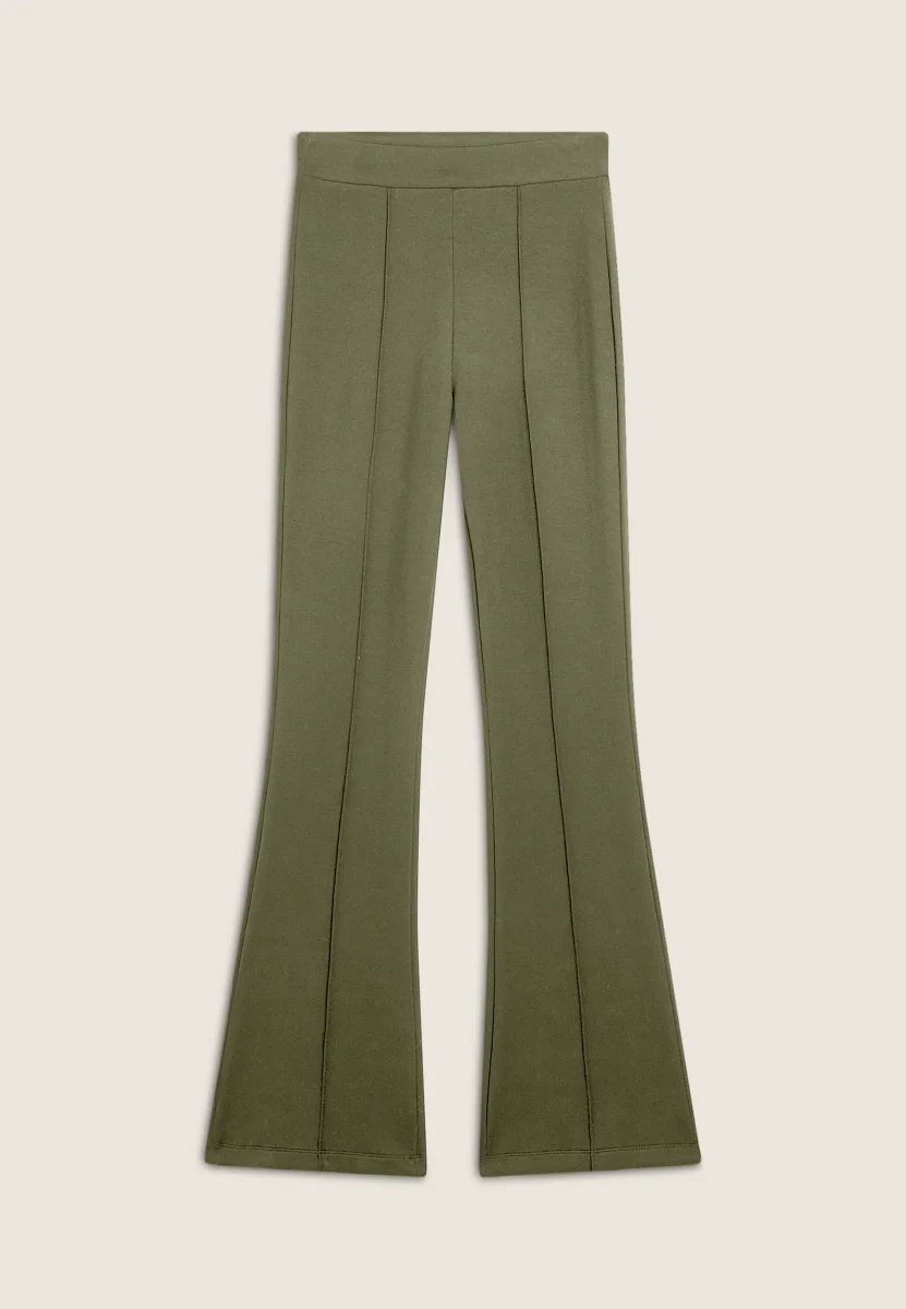 Pantalone slim vita alta in felpa di viscosa fondo a zampa