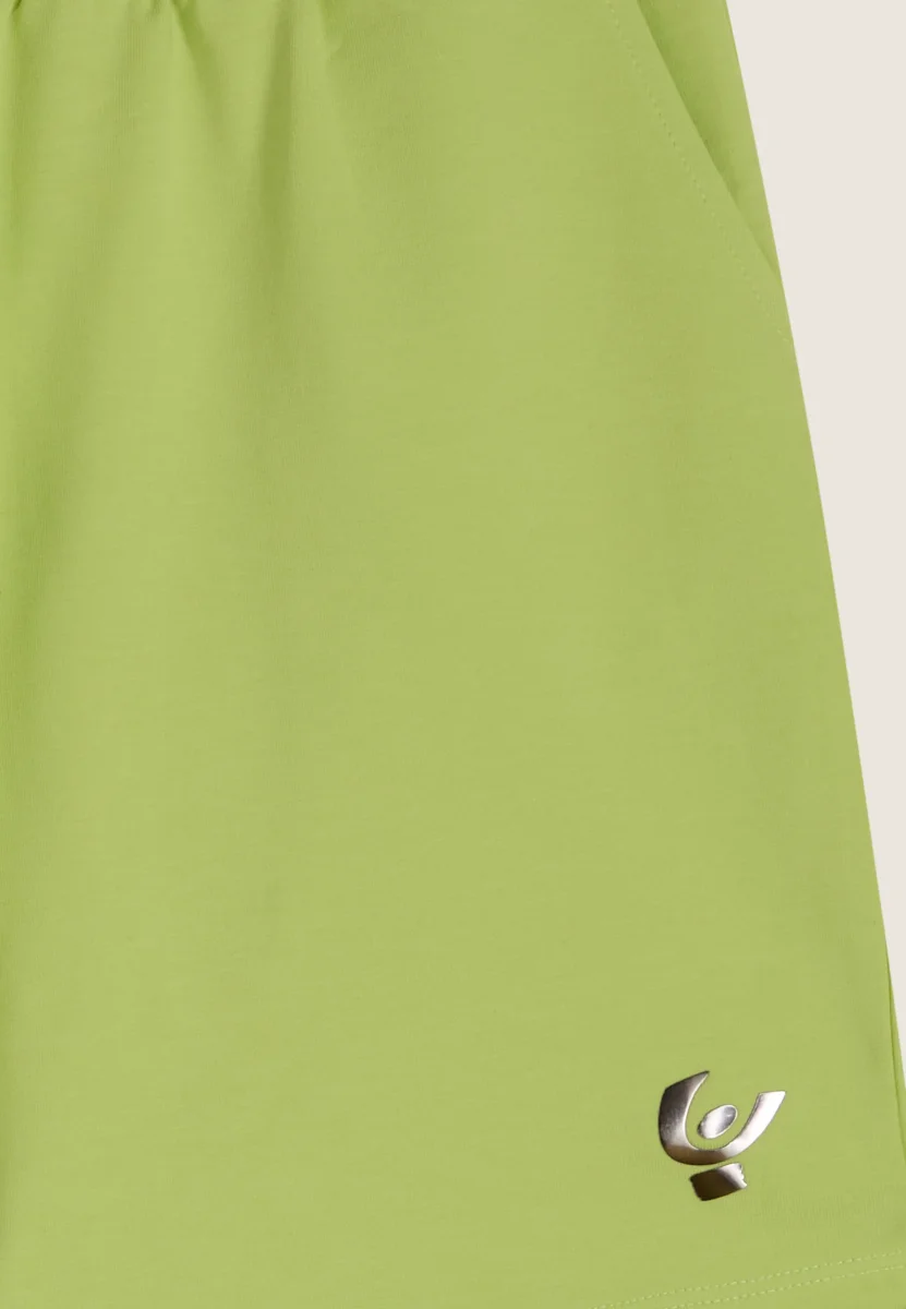 Comodi e versatili, questi pantaloni lunghezza bermuda da bambina in cotone elasticizzato sono ideali per il tempo libero e le giornate attive. Il design presenta tasche interne, fondo dritto e una vita con elastico interno e coulisse in tono colore, per una vestibilità stabile e regolabile. Il dettaglio distintivo è il logo FREDDY in stampa argento sul fondo gamba sinistro, che dona un tocco brillante al look essenziale del capo.