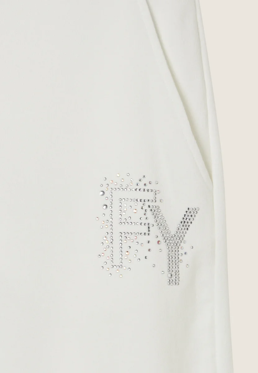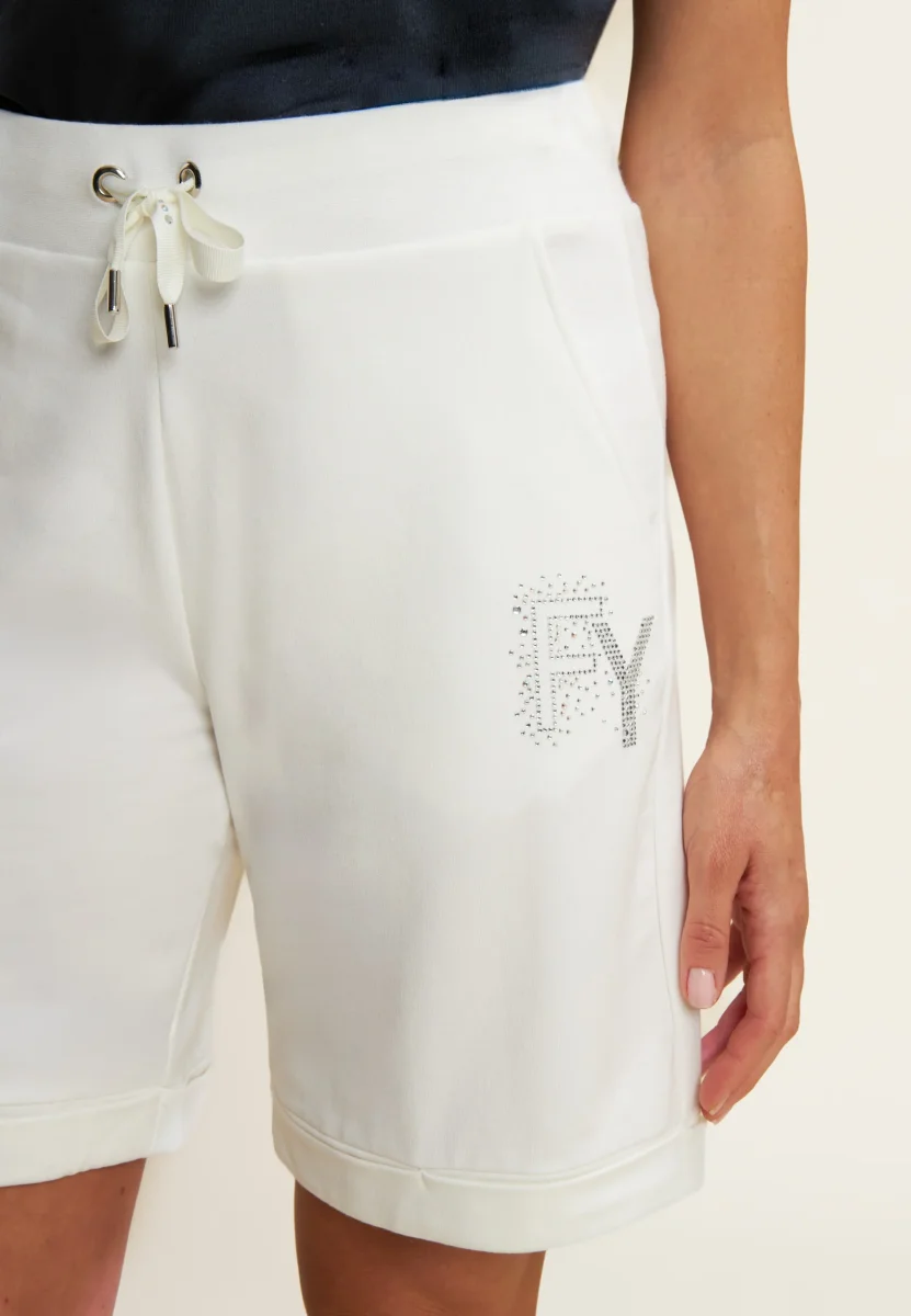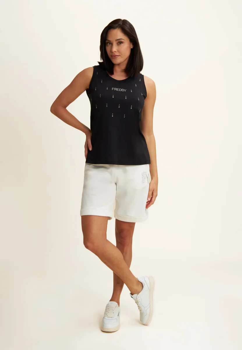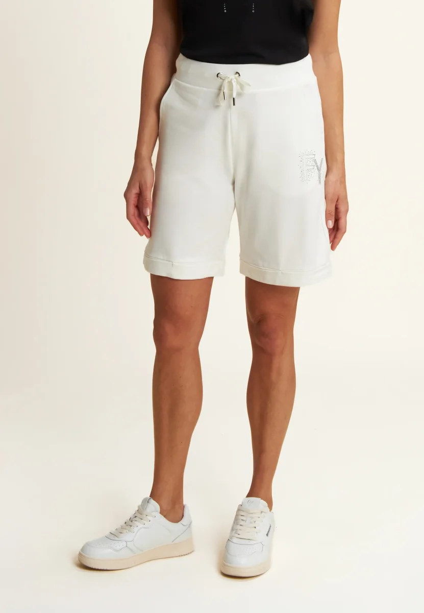 Perfetti per un look sportivo e fresco, questi pantaloncini in French Terry Modal offrono leggerezza e morbidezza al tatto. La vita regular in costina con coulisse e la lunghezza bermuda con risvolto sul fondo garantiscono un fit confortevole e versatile. I dettagli in strass includono il logo FY sul fianco anteriore sinistro e il logo FREDDY sul fianco posteriore destro, mentre le tasche anteriori interne completano il design.