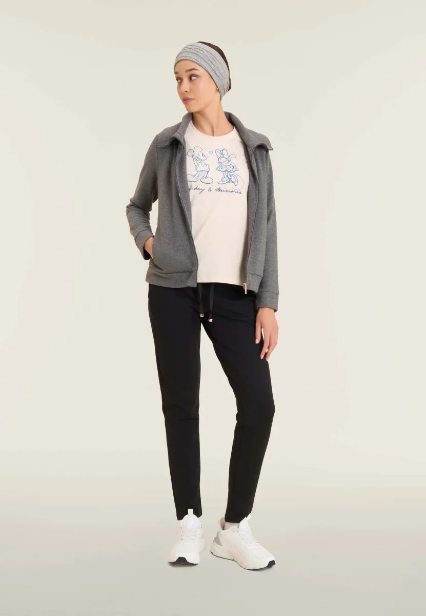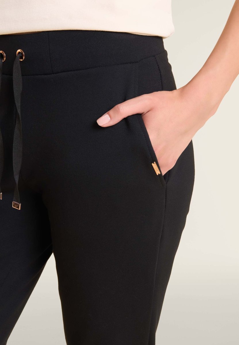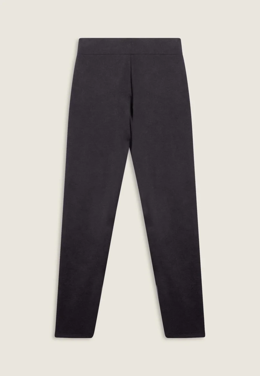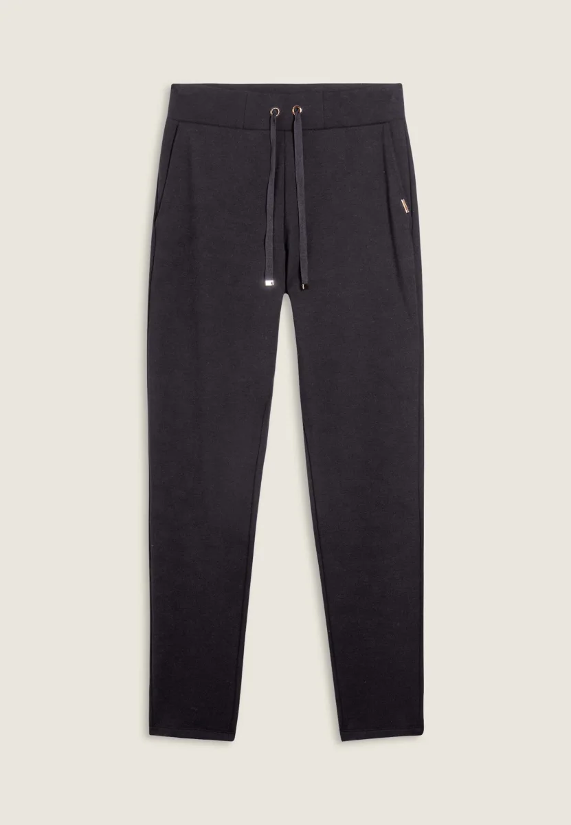 Pantaloni da donna a gamba dritta, in felpa modal garzata elasticizzata che assicura comfort e morbidezza. Con vita regular in costina e coulisse regolabile, tasche alla francese e placchetta logo sul bordo tasca sinistra.