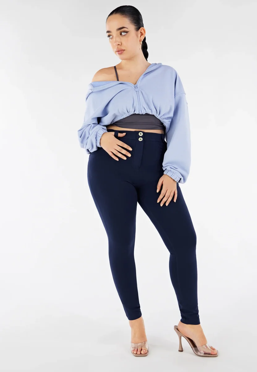 Pantaloni push up curvy della linea WR.UP® in cotone organico con elastan riciclato, ideati per valorizzare specificatamente le forme più generose grazie alla vestibilità comoda su vita e fianchi e superskinny sul resto della gamba. Il modello presenta vita regular, lunghezza regular e si presta ad essere l’alleato perfetto per mettere in luce la tua femminilità grazie al gradevole effetto shaping dato dall’innovativa tecnologia WR.UP® brevettata da Freddy che esalta la silhouette e dona un effetto modellante e push up per mezzo di un particolare sistema di inserti e cuciture.