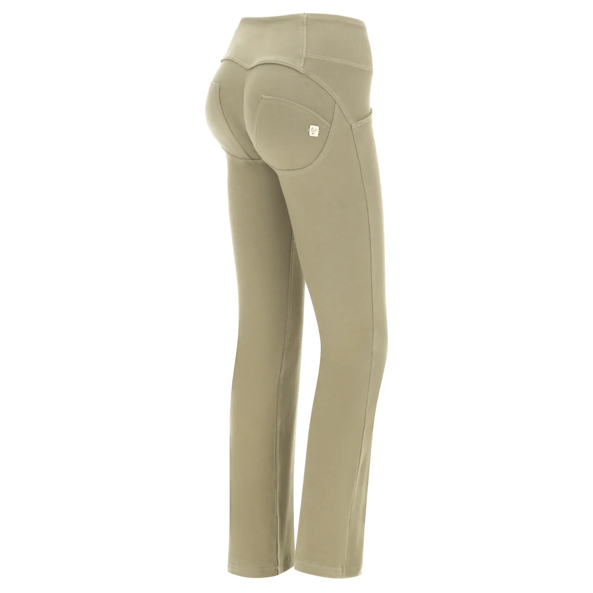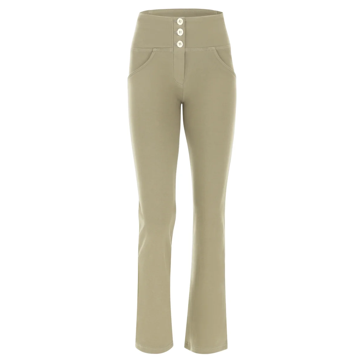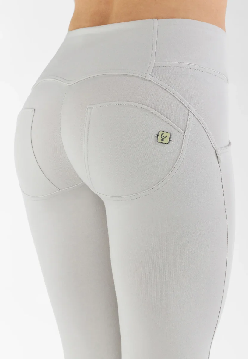 Pantaloni push up WR.UP® in cotone organico elasticizzato, caratterizzati dalla vita media con bottoni e fondo ampio corto, votati alla celebrazione della tua bellezza. Il design a wide bottom cropped che segue le linee dei fianchi e si apre sul fondo mette in luce la tua femminilità, ulteriormente valorizzata dallo speciale effetto modellante e sollevante dell’innovativa tecnologia WR.UP® brevettata da Freddy che aiuta ad esaltare la silhouette per mezzo di un particolare sistema di inserti e cuciture.