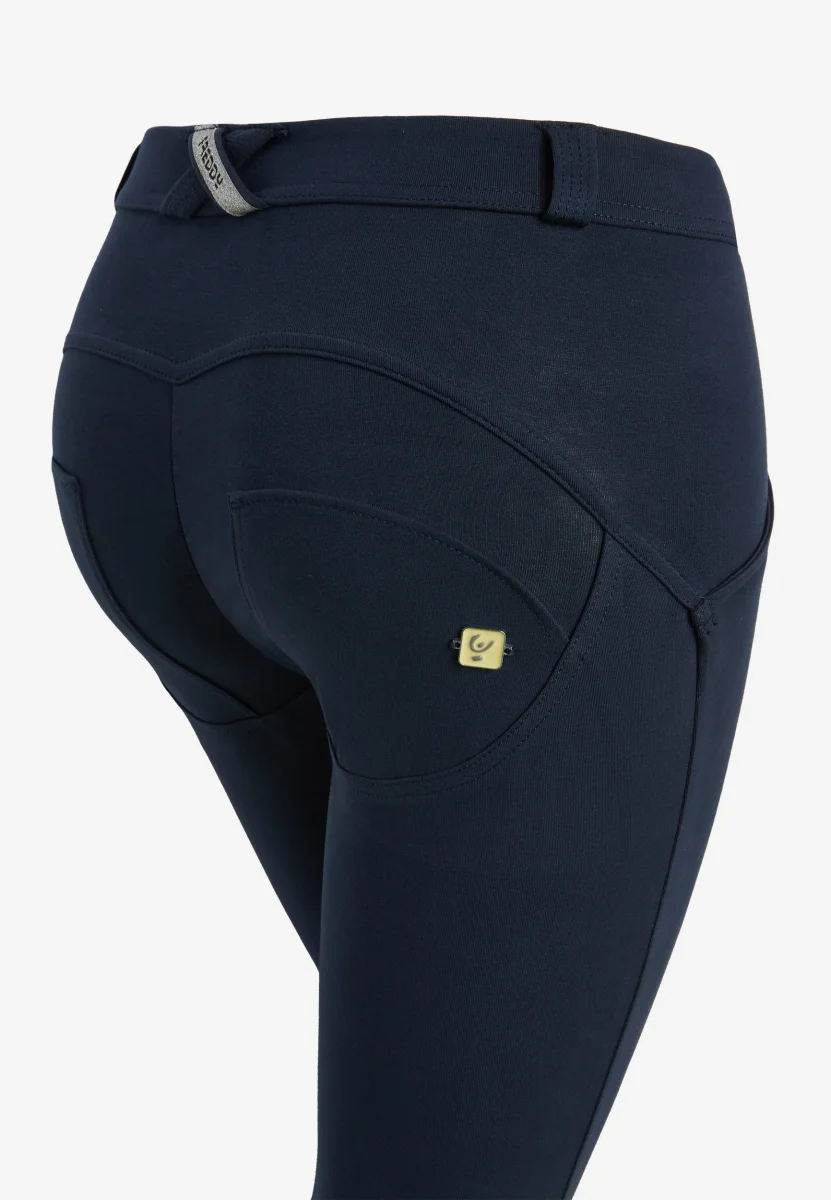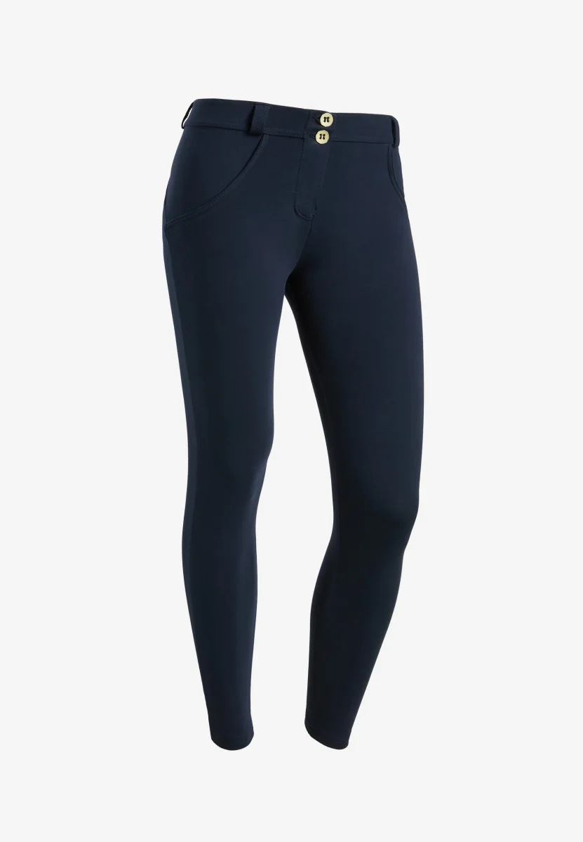 Pantaloni push up della linea WR.UP® in cotone organico ed elastan riciclato con vestibilità superskinny e fit a clessidra per una massima aderenza e valorizzazione dei fisici con vita molto stretta e i fianchi più pronunciati. Hanno vita con altezza regular e passanti, chiusura a due bottoni e lunghezza regular.