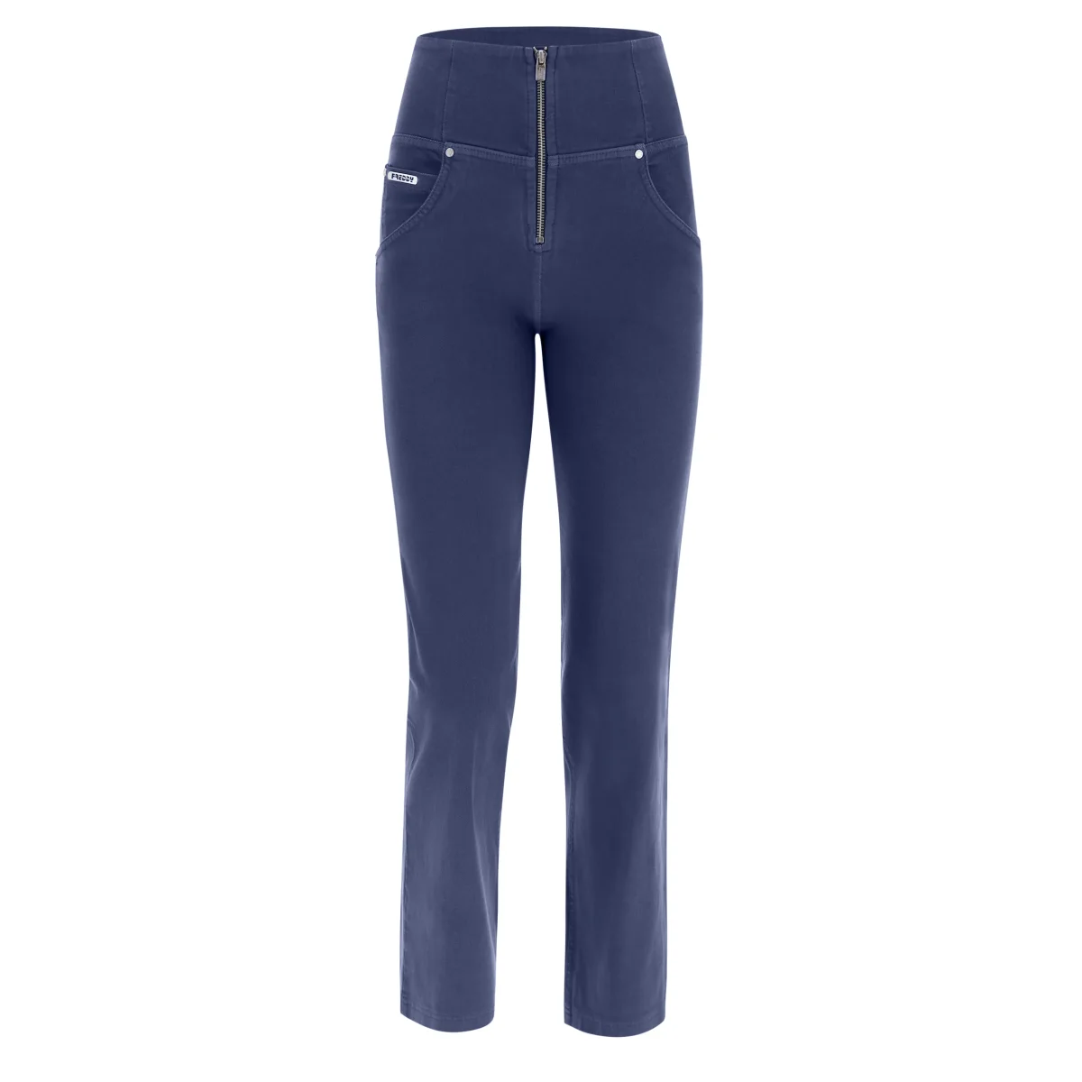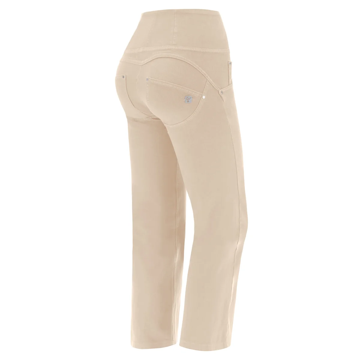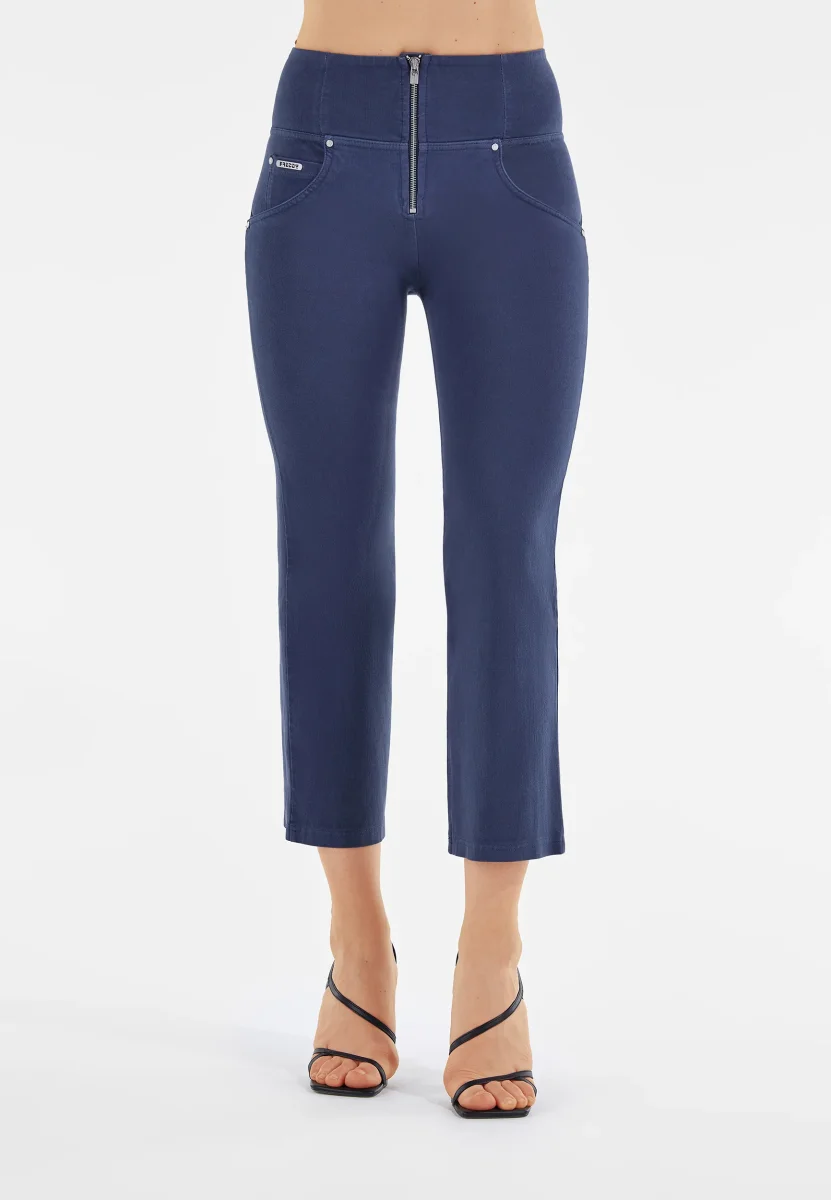 Pantaloni push up della linea WR.UP® con taglio wide bottom cropped in gabardine elasticizzato ecologico tinto in capo. Hanno vita alta con zip frontale, tasche anteriori e posteriori vere e lunghezza sopra la caviglia. Capo ideato per mettere in luce la tua femminilità grazie al design che seguendo le linee dei fianchi scende morbidamente sul resto della gamba terminando con il fondo ampio e dritto e alla tecnologia WR.UP® brevettata da Freddy che valorizza la silhouette e dona un effetto modellante e sollevante per mezzo di un particolare sistema di cuciture e inserti sapientemente posizionati.